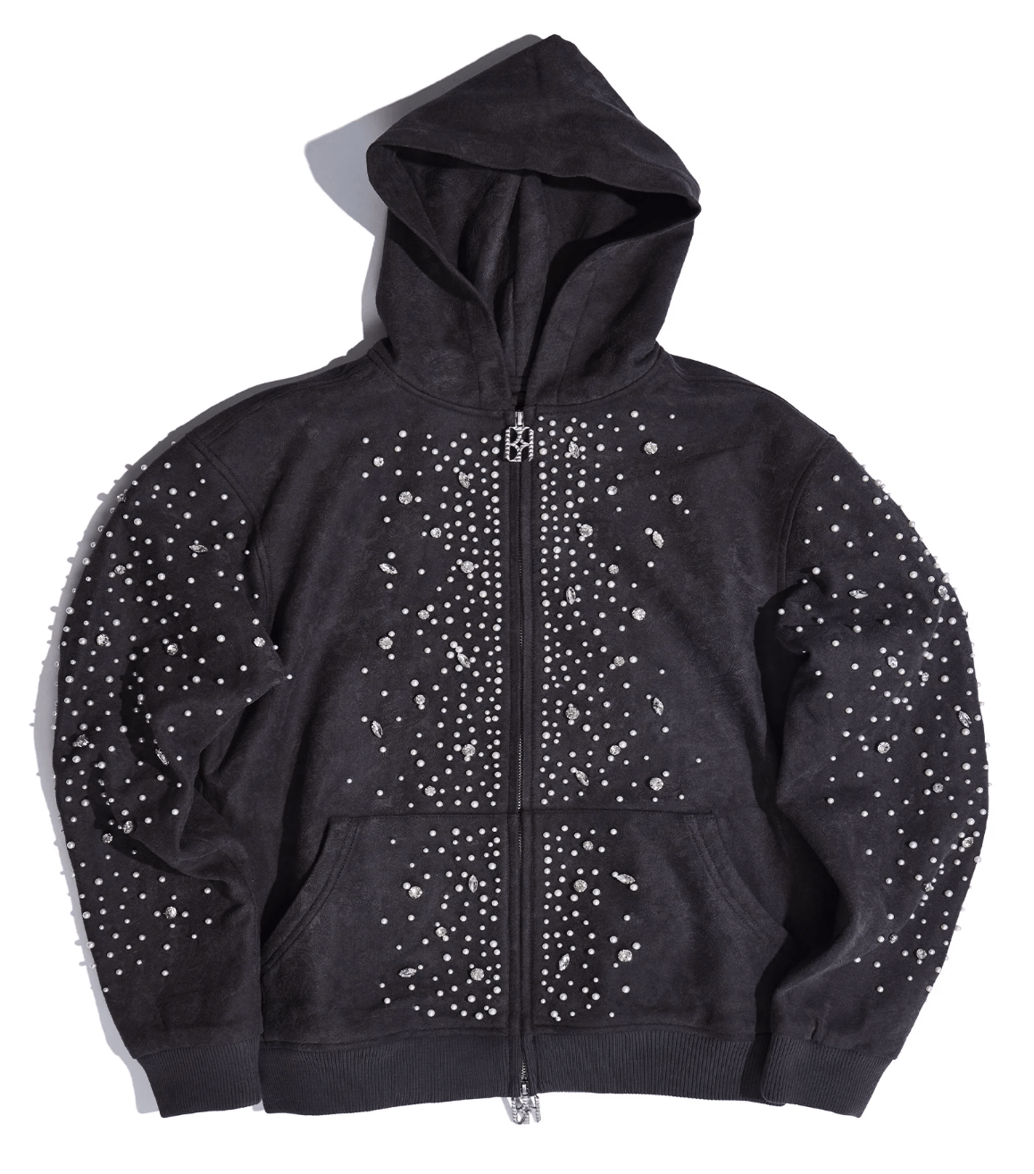 Birth of Royal Child Cashew Blossom Pearl Zip Up Hooded Sweatshirt Washed Black
