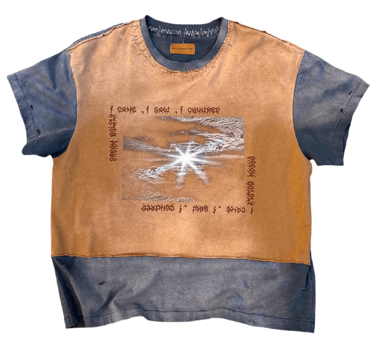 Birth of Royal Child Distressed Stained Short Sleeve Tee Shirt Brown Aged Black