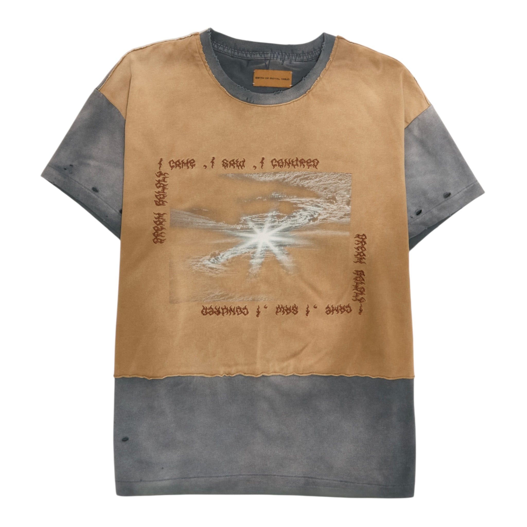 Birth of Royal Child Distressed Stained Short Sleeve Tee Shirt Brown Aged Black