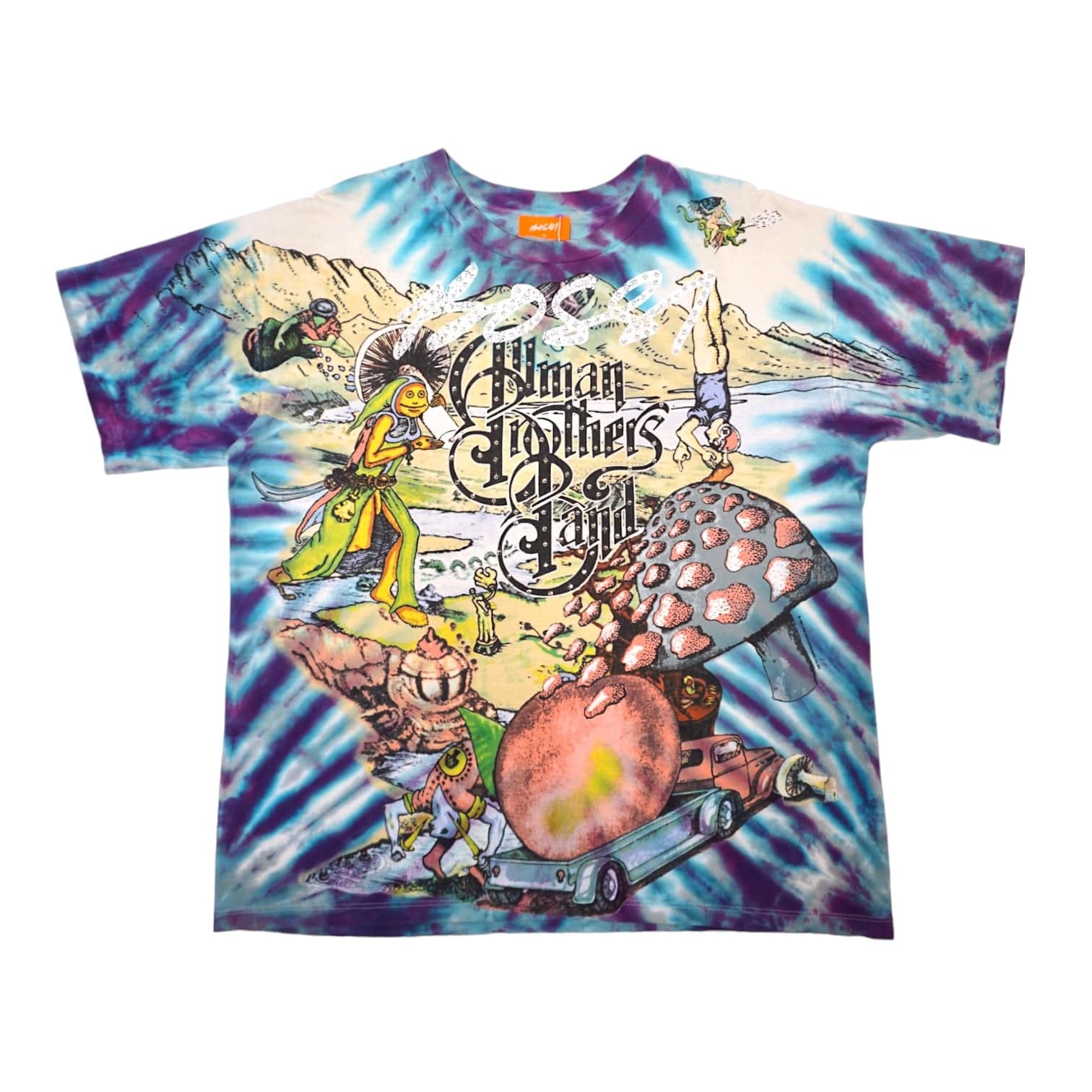 Bossi Allman Brothers Band Rhinestone Studded Logo Vintage Short Sleeve Tee Shirt Tie Dye Multi