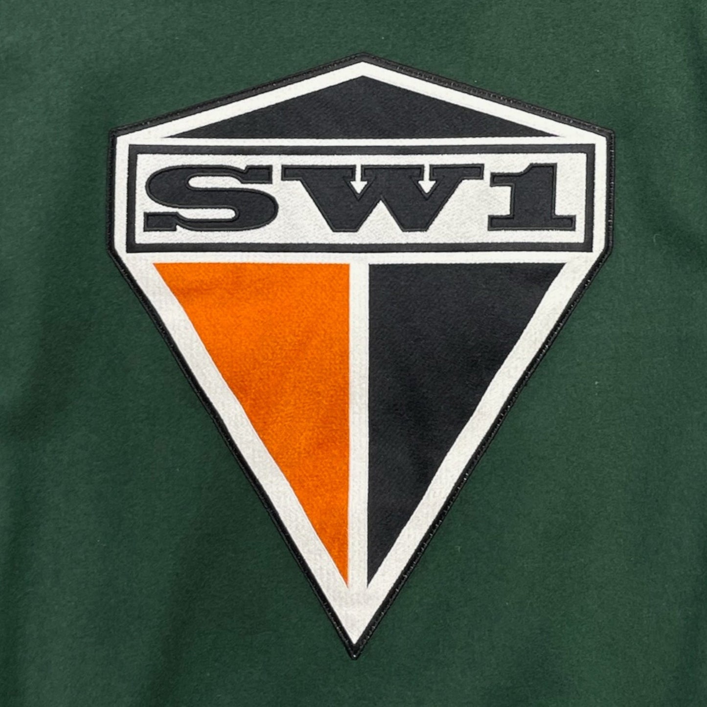 Origins NYC offers this Burberry Graphic Logo Varsity Jacket in Green.