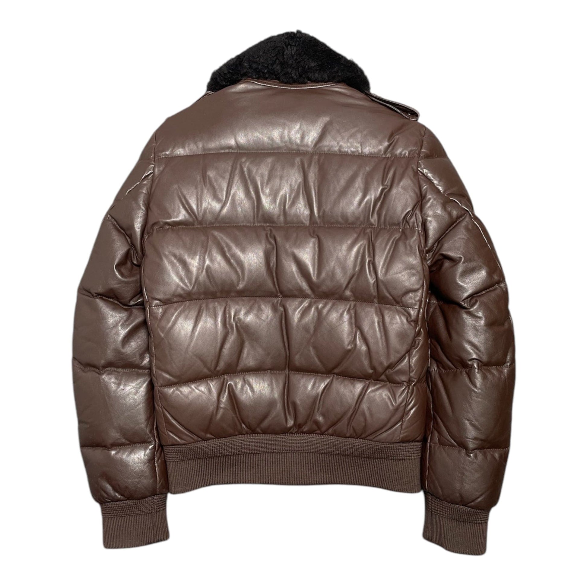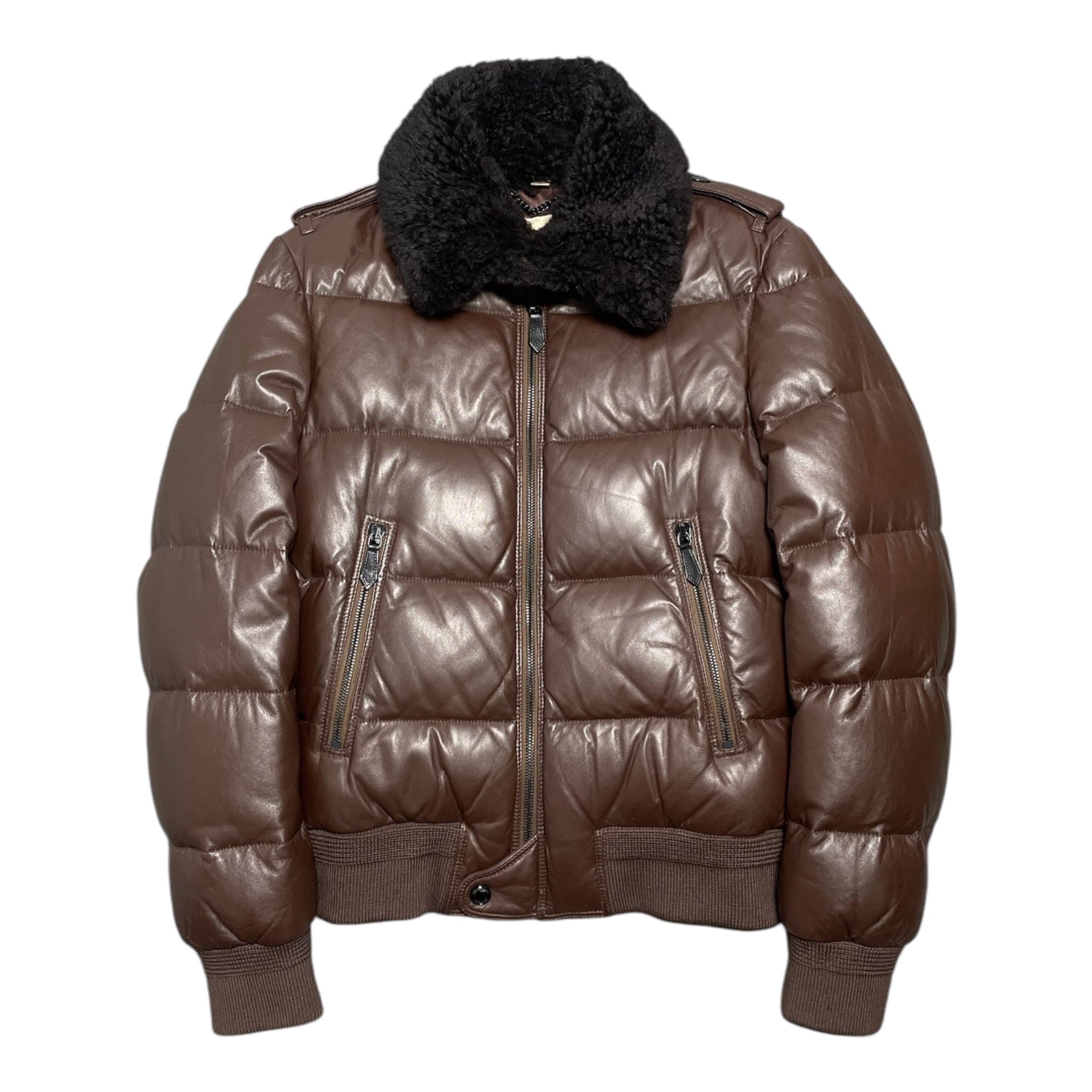 Burberry Leather Shearling Bomber Jacket Brown Pre-Owned