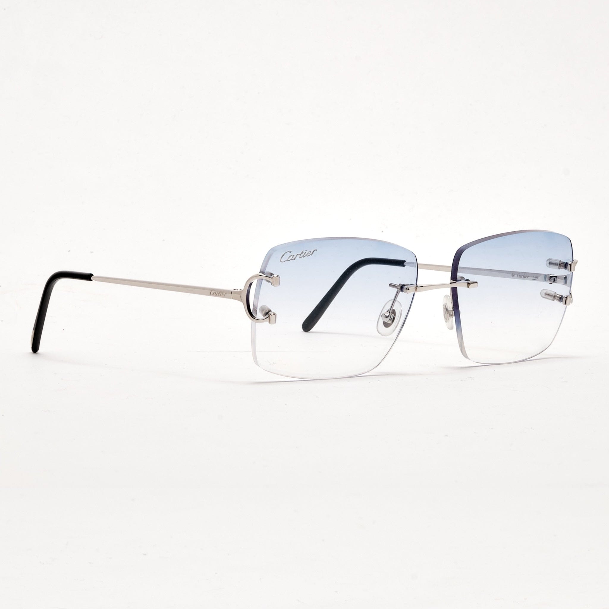 Cartier C Decor Wire Frame Glasses Silver (Custom Blue Lenses)