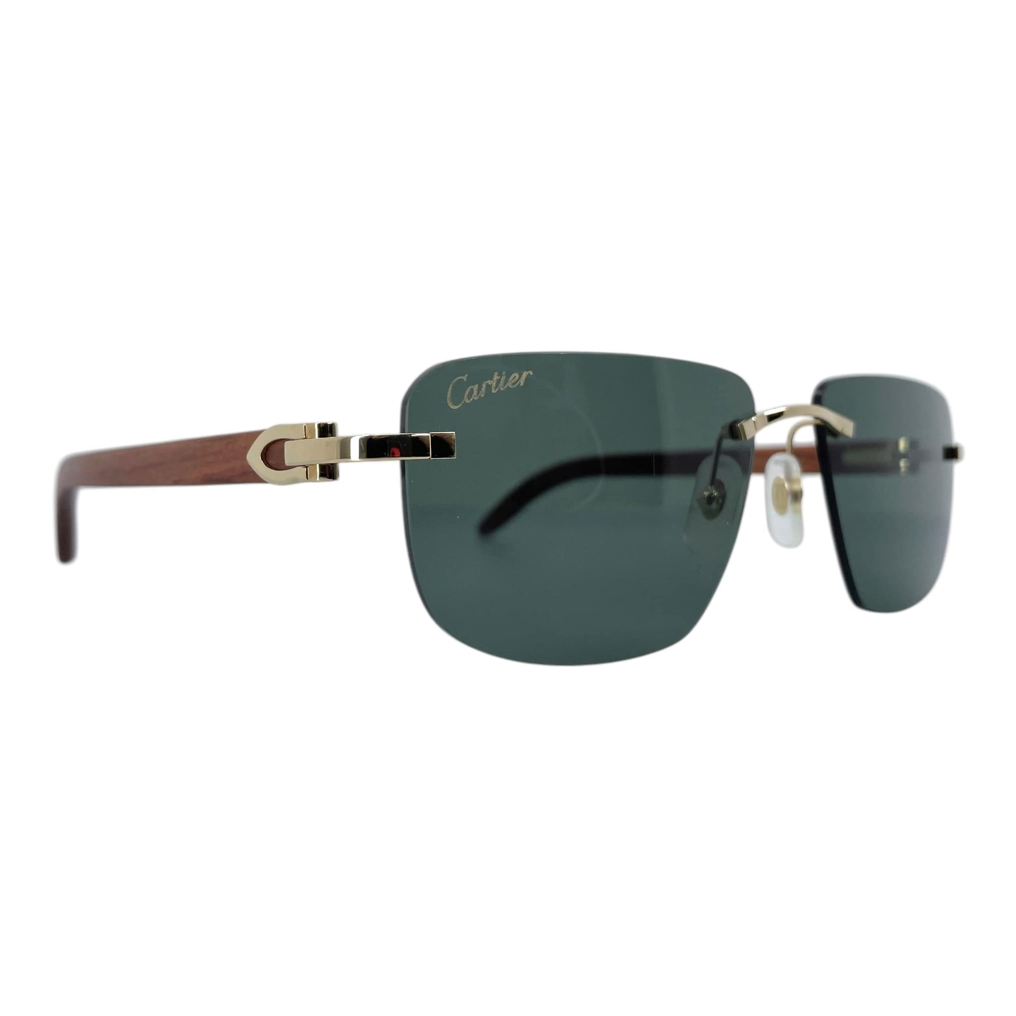 Cartier C Decor Wood Frame Glasses Brown Gold (XL Lenses Green)