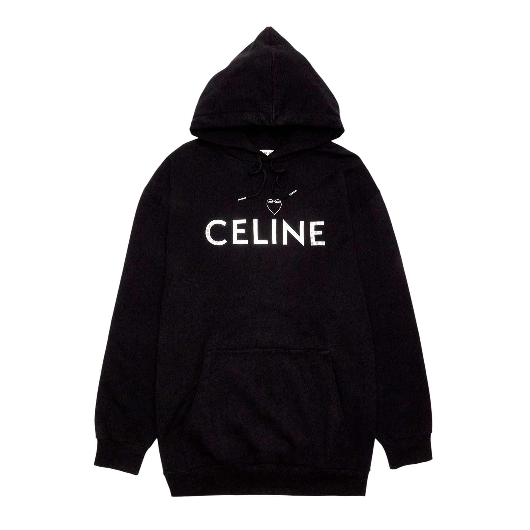 Celine x Sara Yukiko Mon Studded Lucky Lover Logo Hooded Sweatshirt Black White