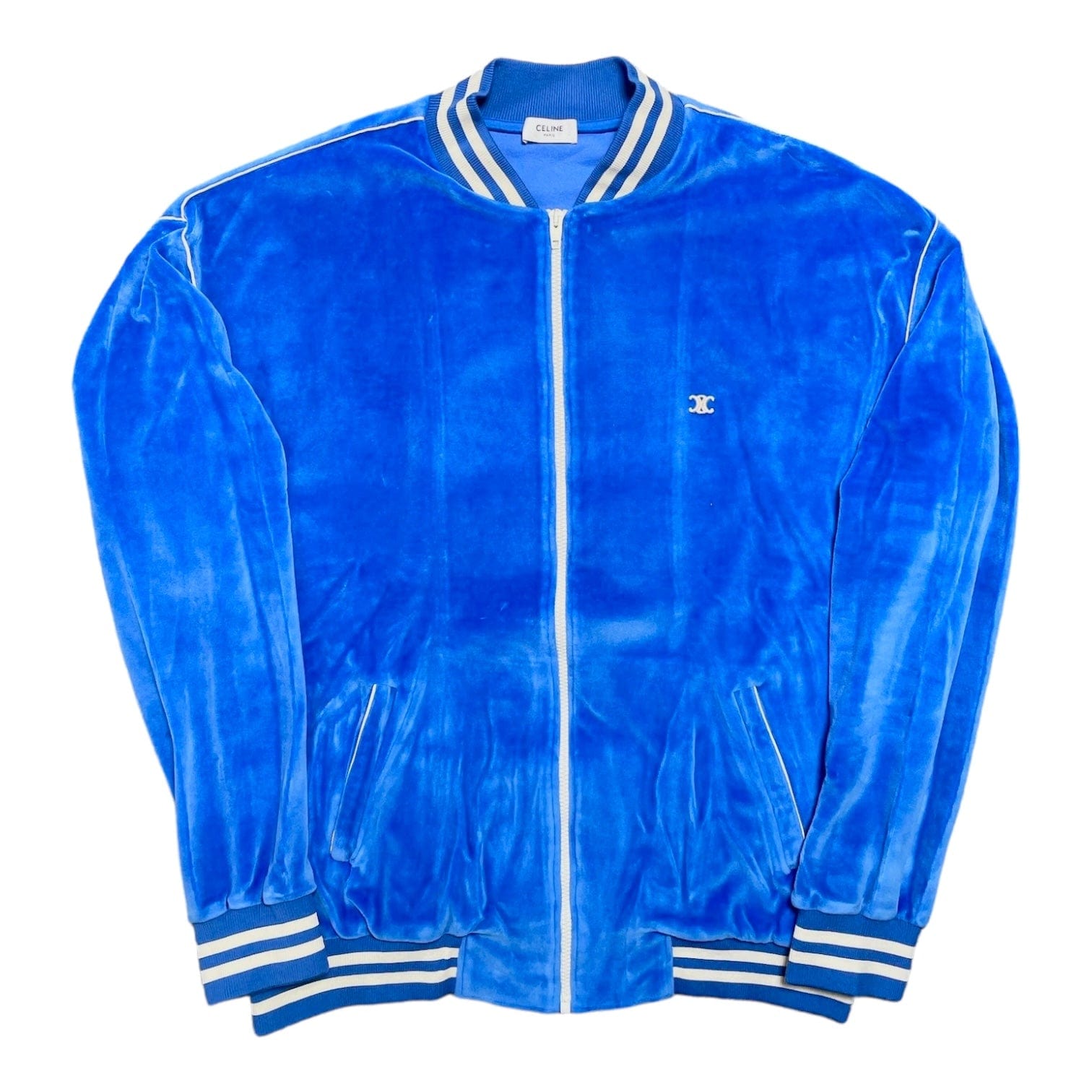 Celine logo Velvet Varsity Jacket Blue Pre-Owned