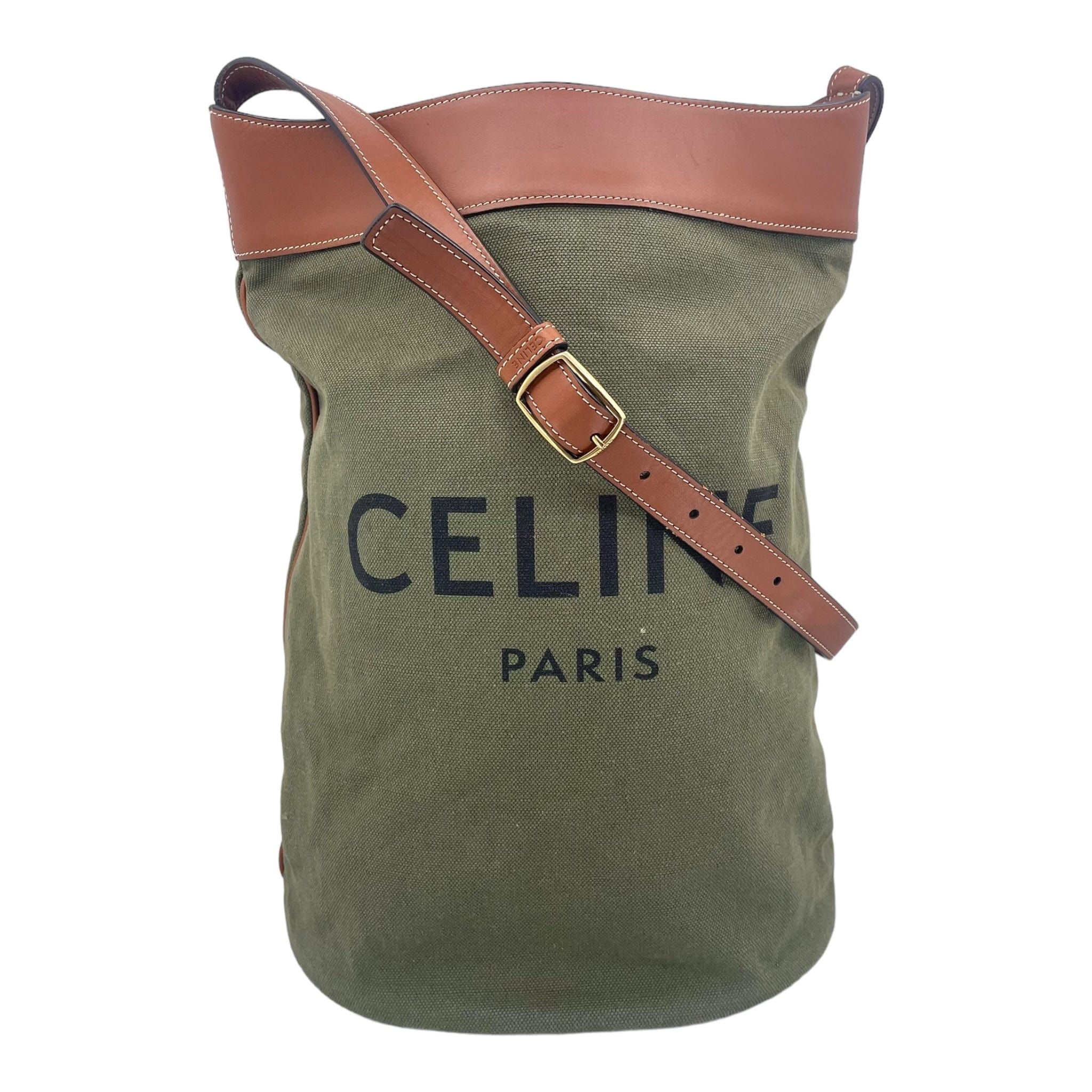 Celine Medium Soft Bucket Side Bag Khaki Tan Pre-Owned