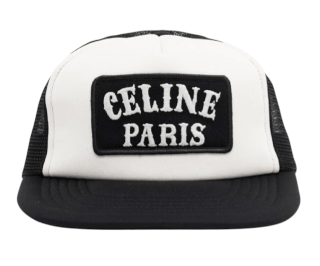 Celine Paris Logo Trucker Hat Black White