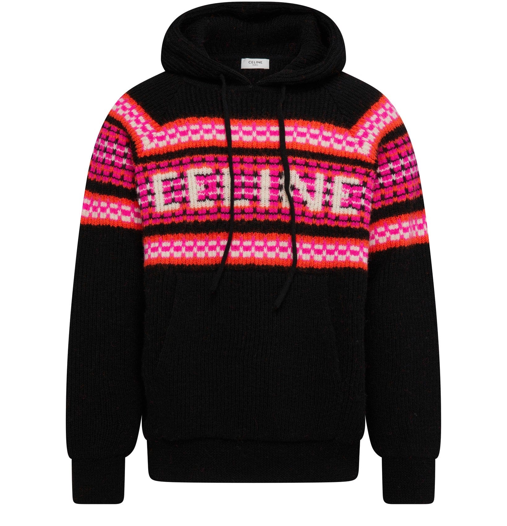 Celine Ski Logo Jacquard Hooded Sweatshirt Black Multi Pre-Owned