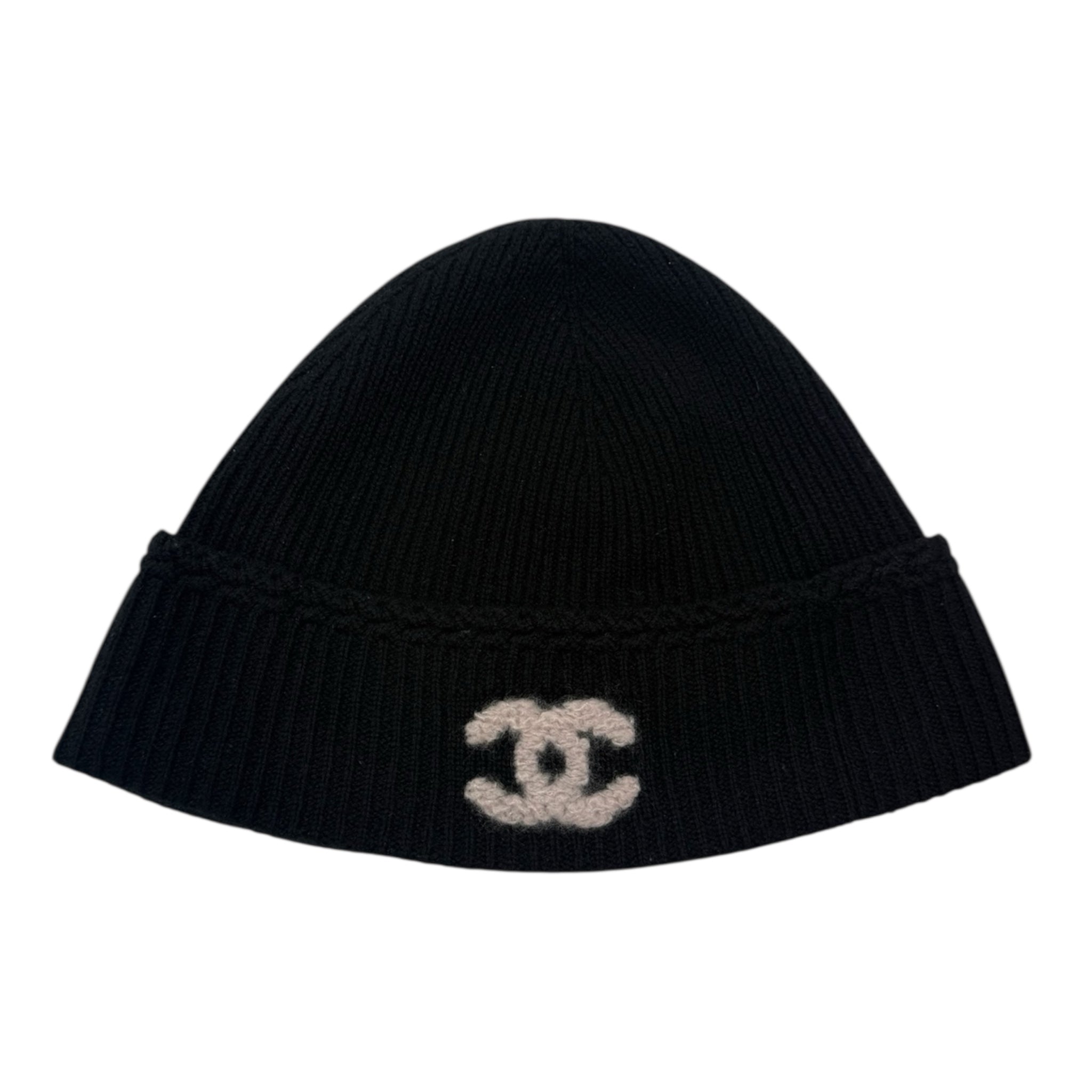Chanel CC Logo Cashmere Beanie Black Light Pink