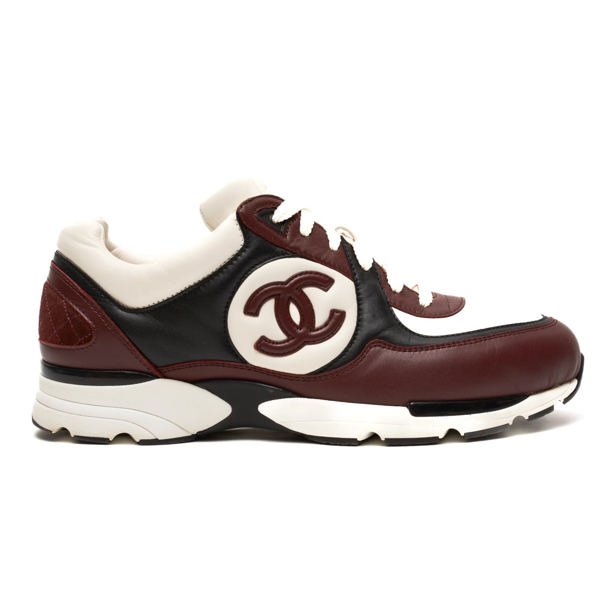 Chanel CC Logo Trainer Low Leather Burgundy Black Cream