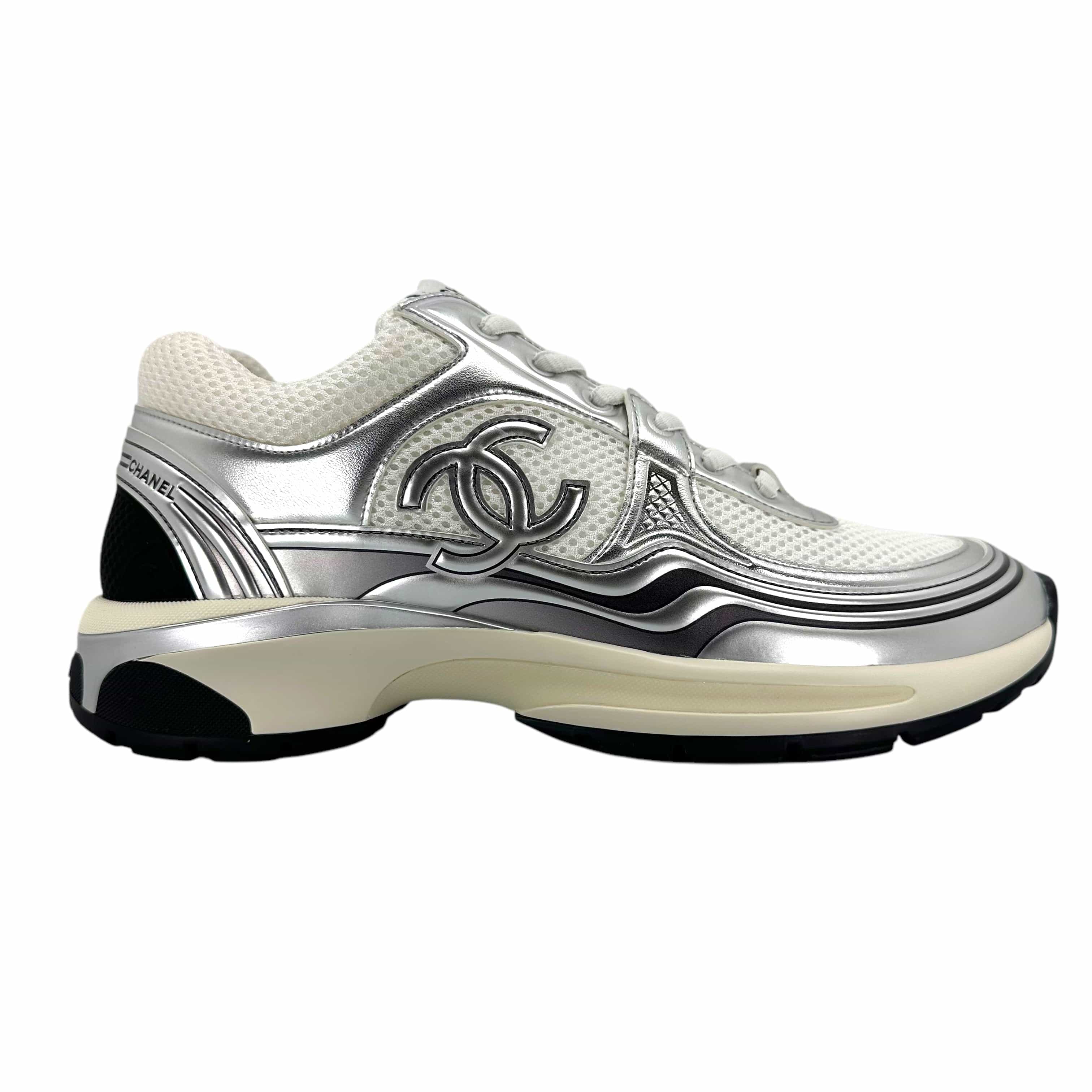 Chanel CC Logo Trainer Low Mesh White Light Grey Silver