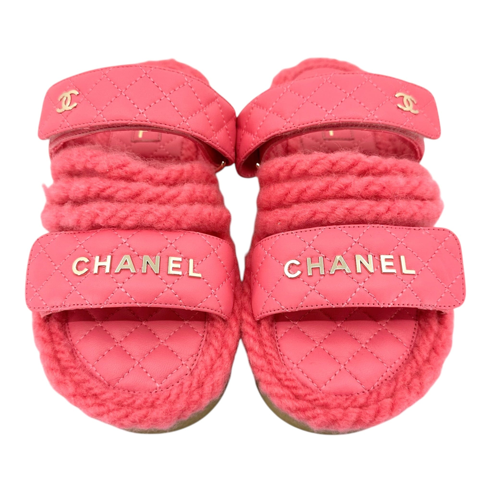Chanel Cord Lambskin Quilted Logo Sandal Pink Beige