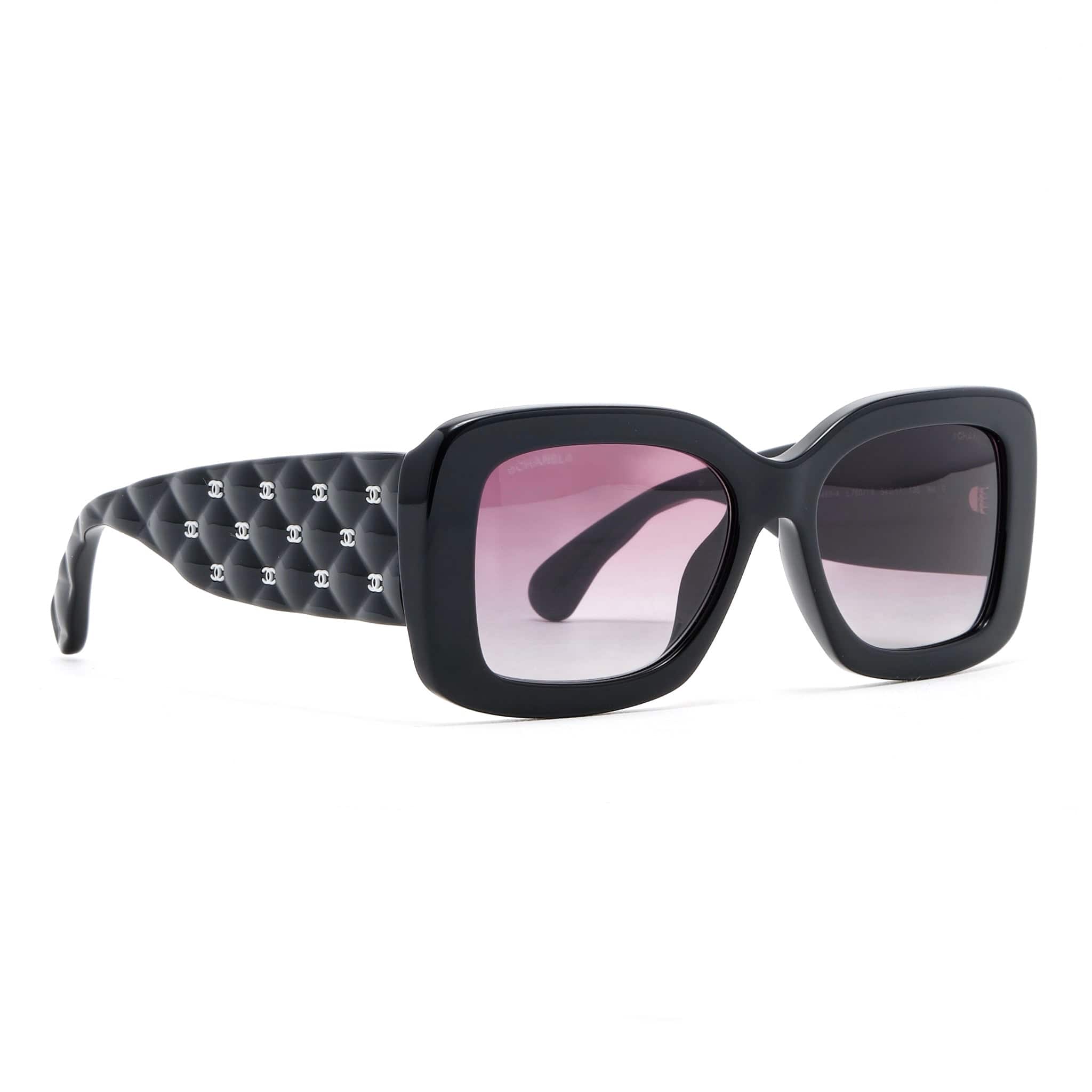 Chanel Quilted CC Rectangle Sunglasses Black White