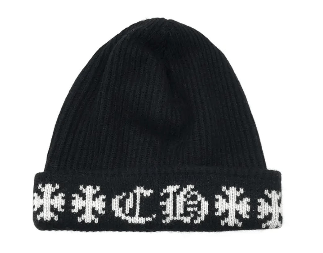 Chrome Hearts Big Daddy Cashmere CH Cross Logo Beanie Black White