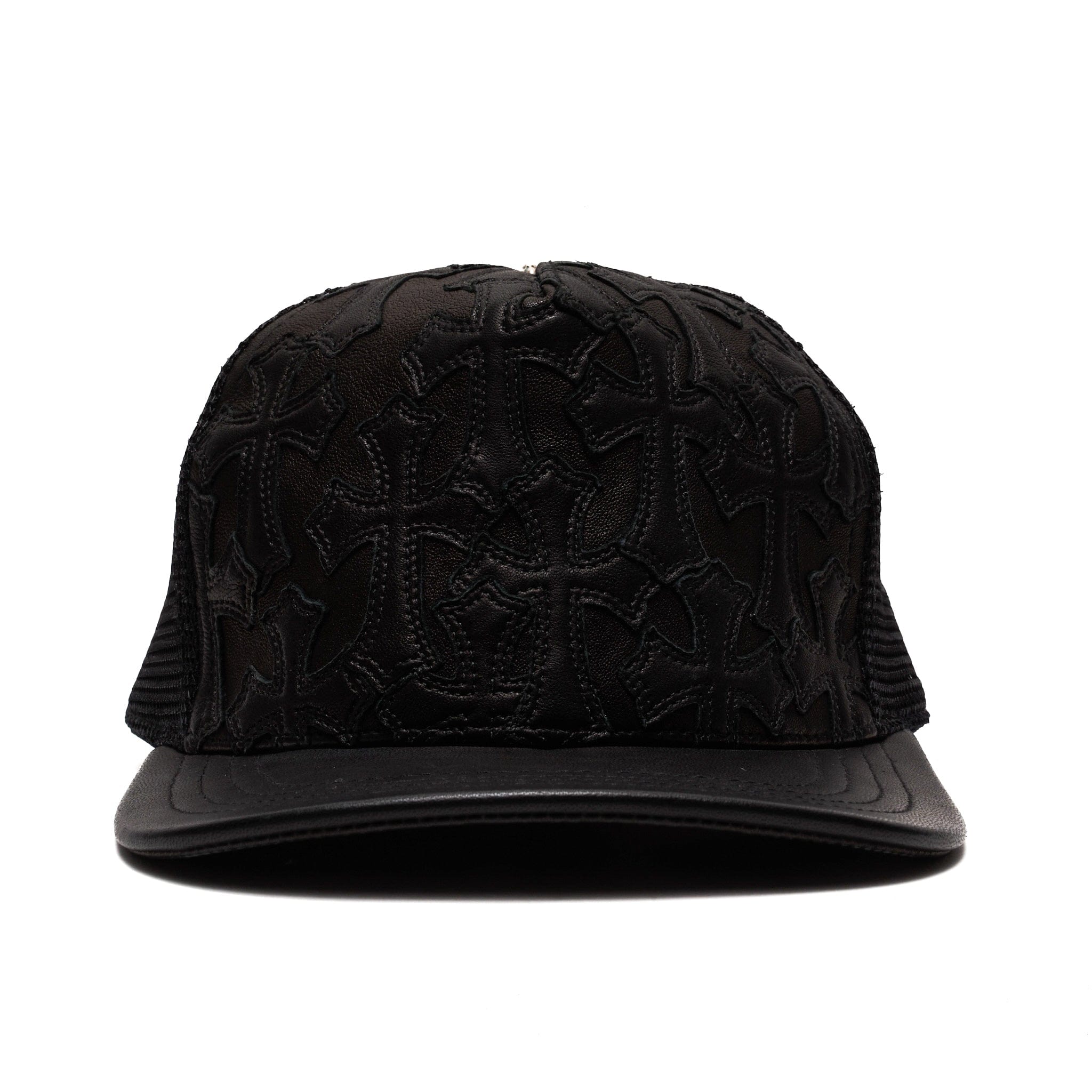 Chrome Hearts Flooded Leather Cross Patch Trucker Hat Black Black