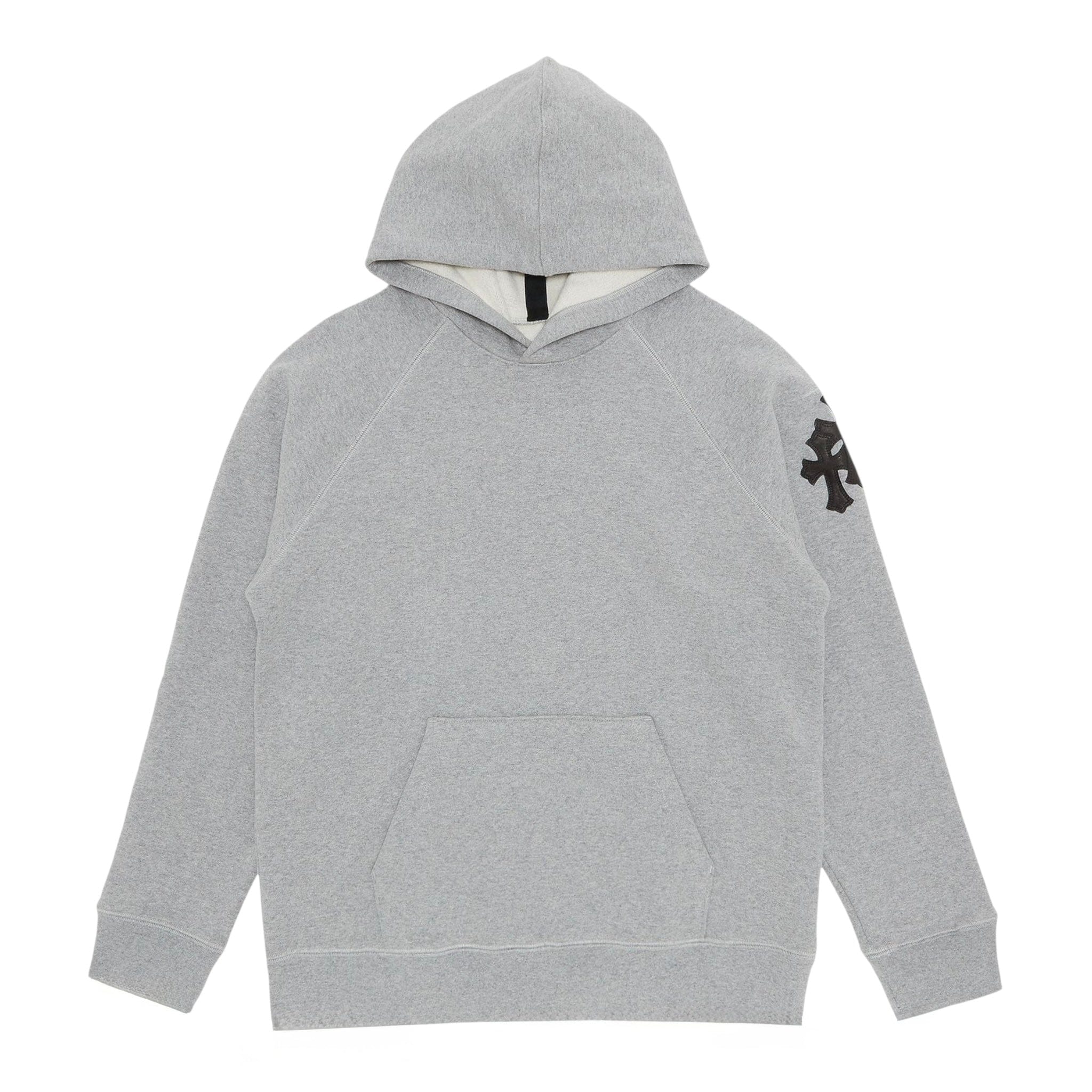 Chrome Hearts Paper Jam Leather Cross Patch Hooded Sweatshirt Grey Black