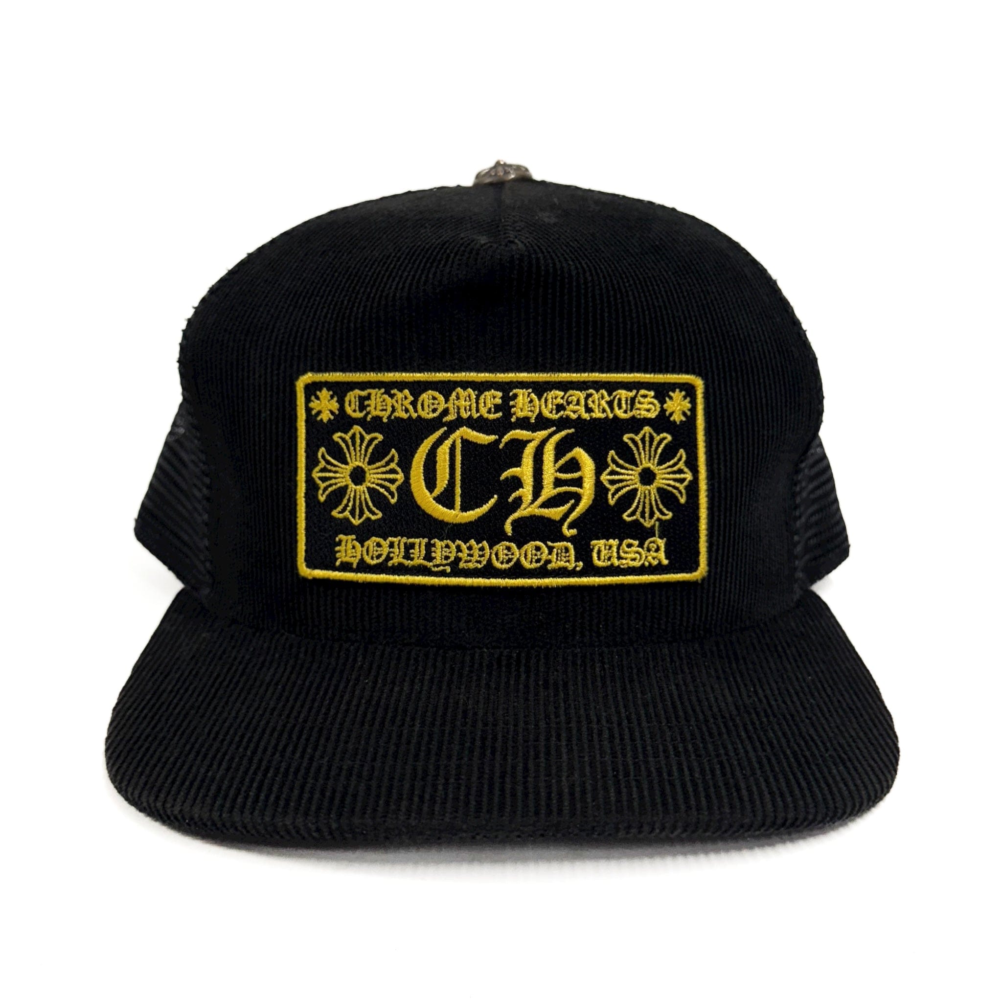 Chrome Hearts Hollywood Exclusive CH Patch Corduroy Trucker Hat Black Gold