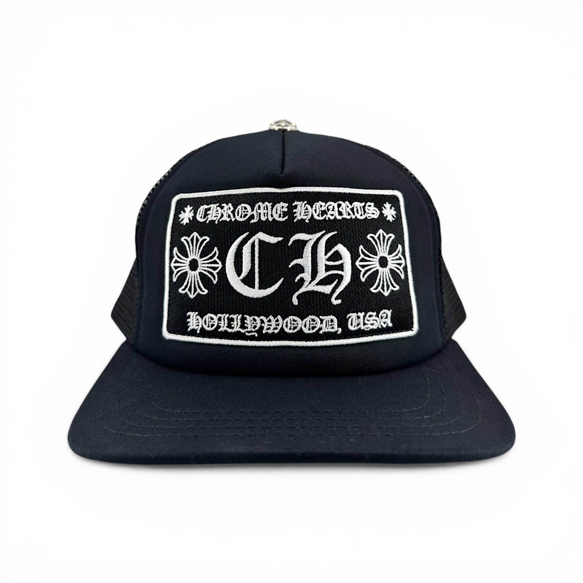 Chrome Hearts Hollywood Exclusive CH Patch Trucker Hat Black White
