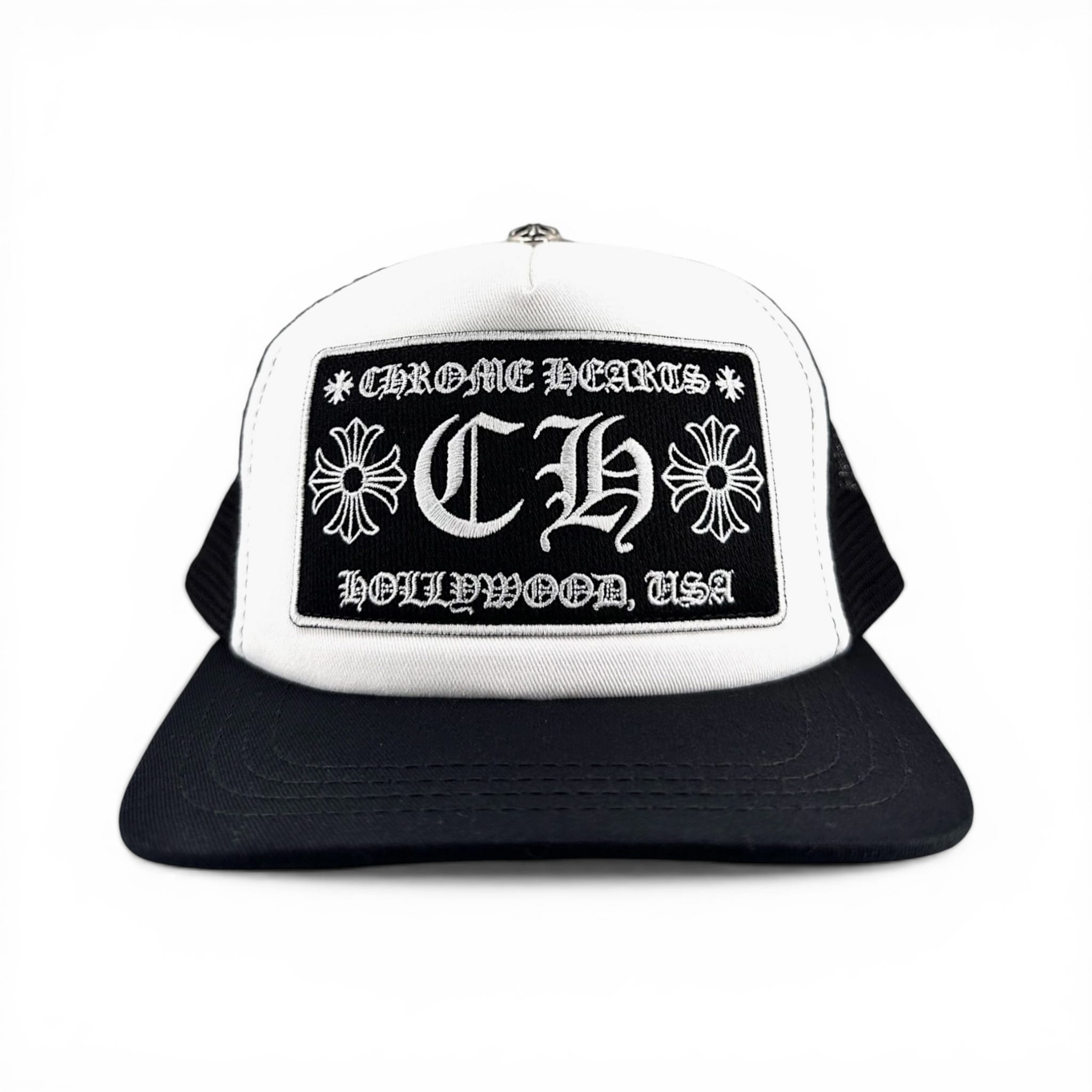 Chrome Hearts Hollywood Exclusive CH Patch Trucker Hat White Black