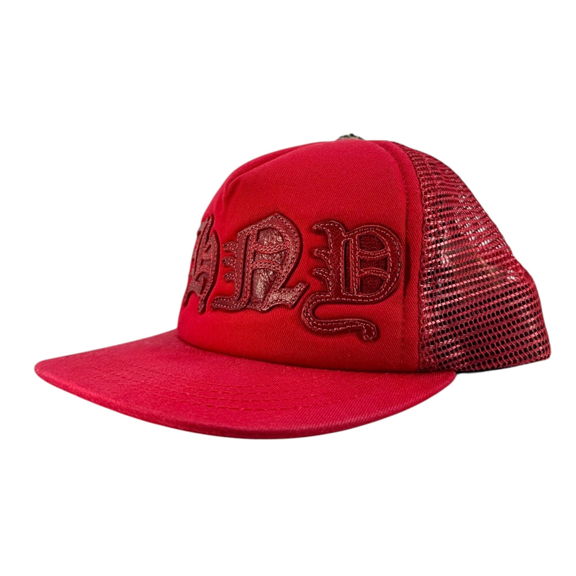 Chrome Hearts CHNY Leather Patch Trucker Hat Red Red