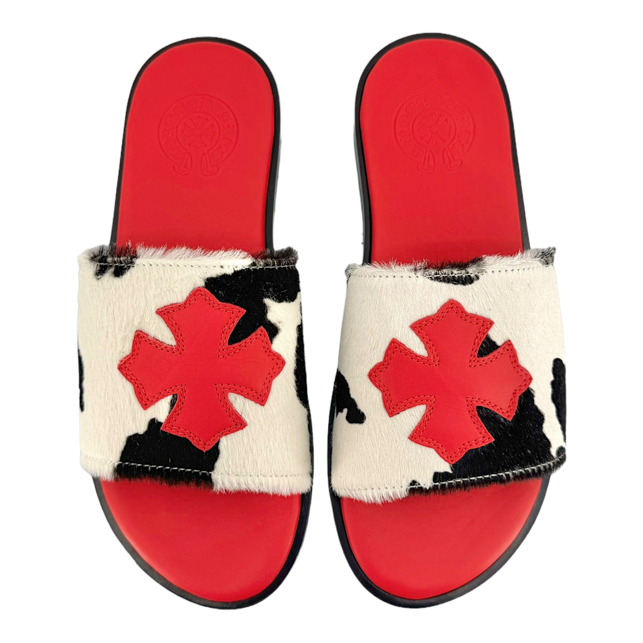 Chrome Hearts Cross Patch Cowhide Leather Slide Sandal Red Black White