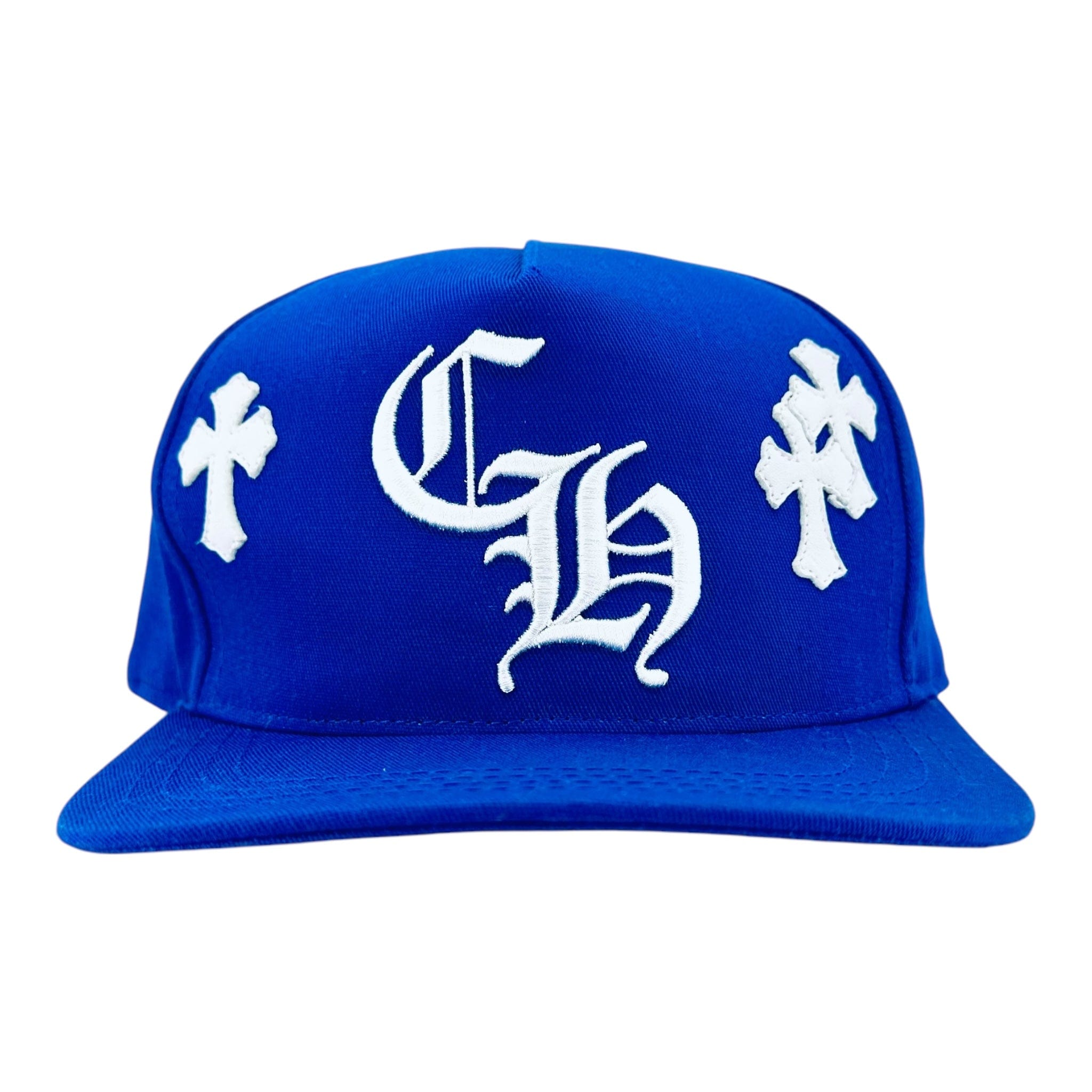 Chrome Hearts Leather Cross Patch Embroidered CH Logo Baseball Hat Blue White