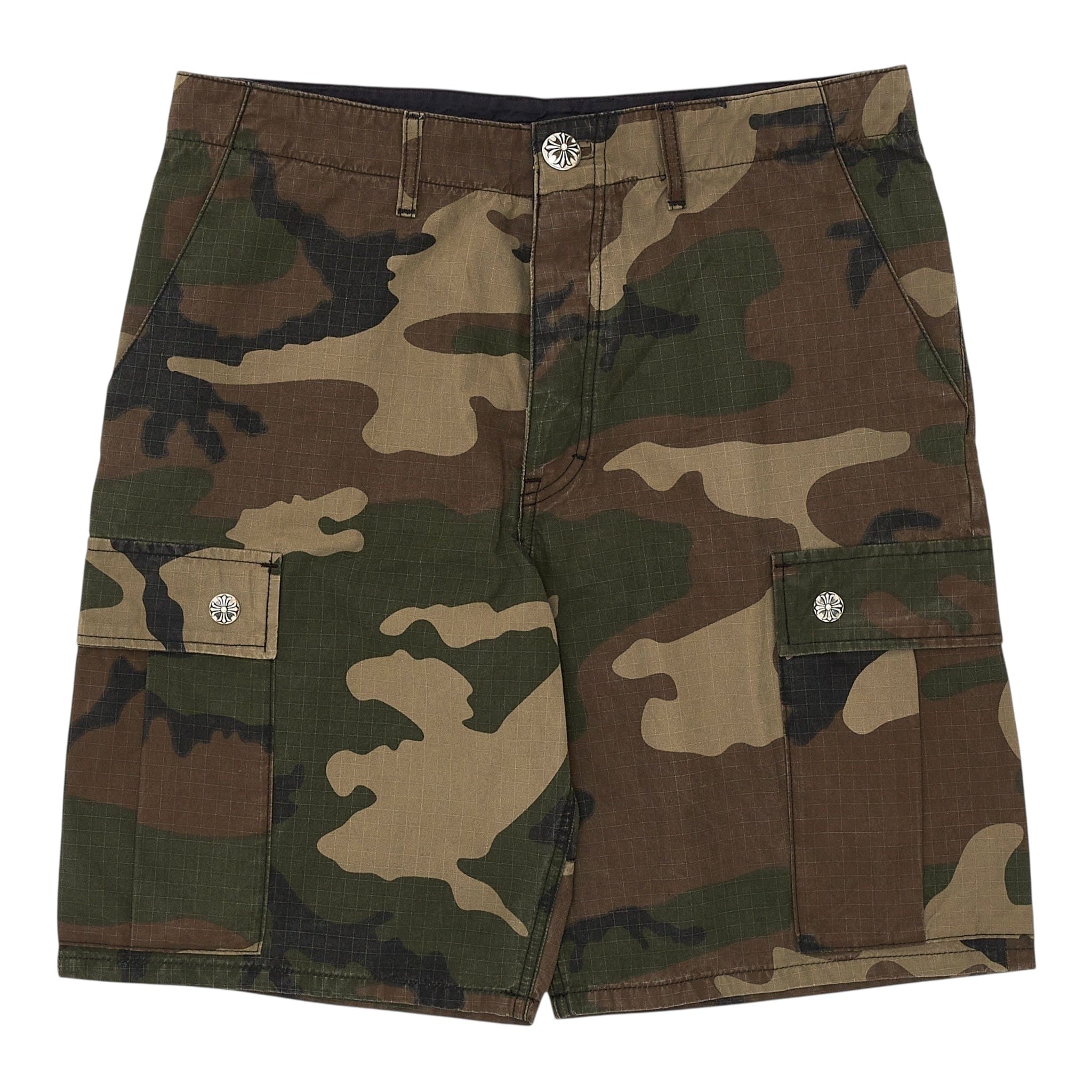 Chrome Hearts Devil Dog Leather Cross Patch Cargo Shorts Camo Multi