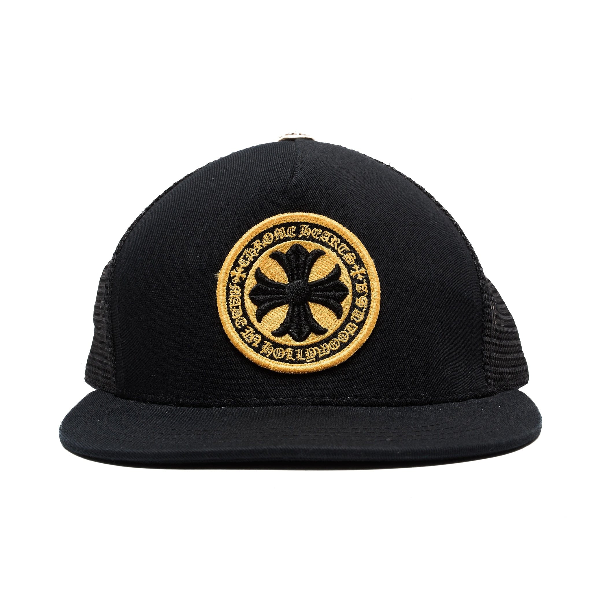 Chrome Hearts Cross Plus Stamp Patch Trucker Hat Black Yellow