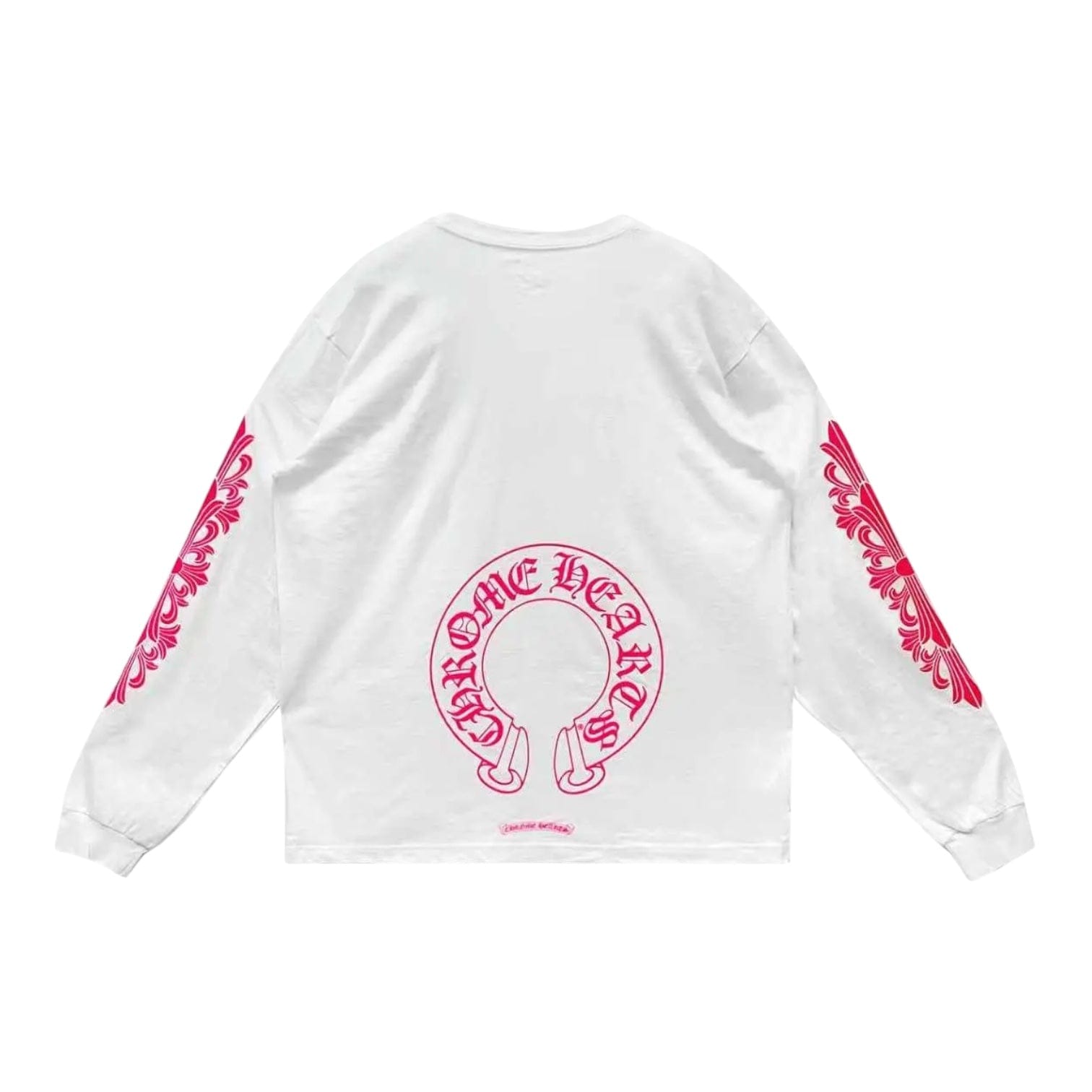 Chrome Hearts Horseshoe Floral Logo Pocket Long Sleeve Tee Shirt White Pink