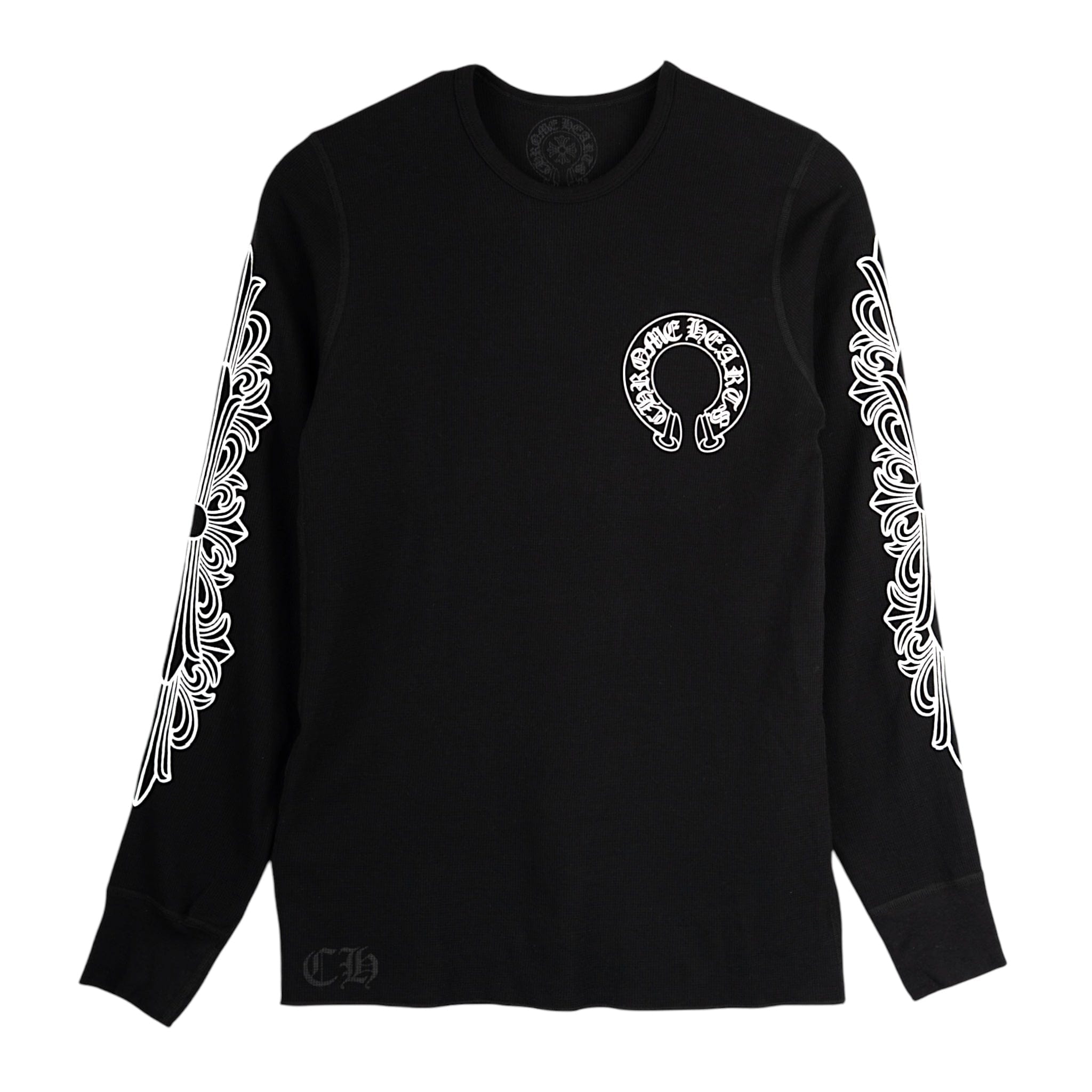Chrome Hearts Horseshoe Floral Logo Thermal Long Sleeve Tee Shirt Black White