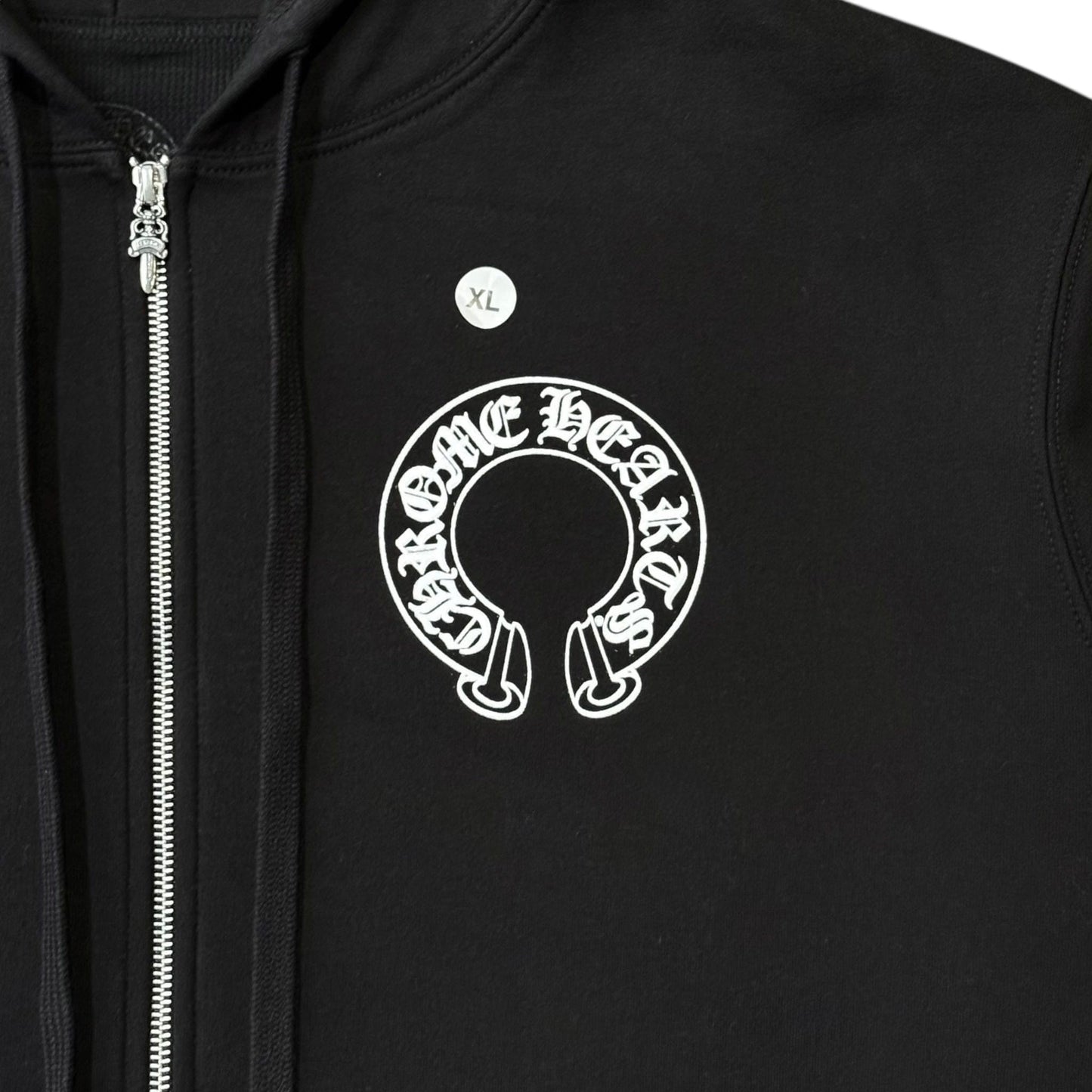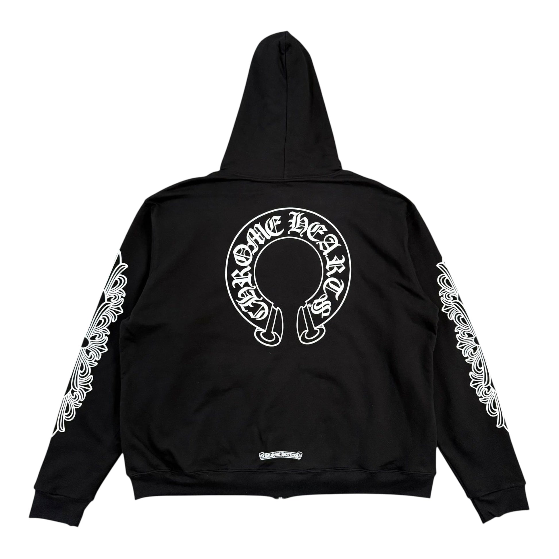Chrome Hearts Horseshoe Floral Logo Zip Up Hooded Sweatshirt Black White (Thermal Lined)