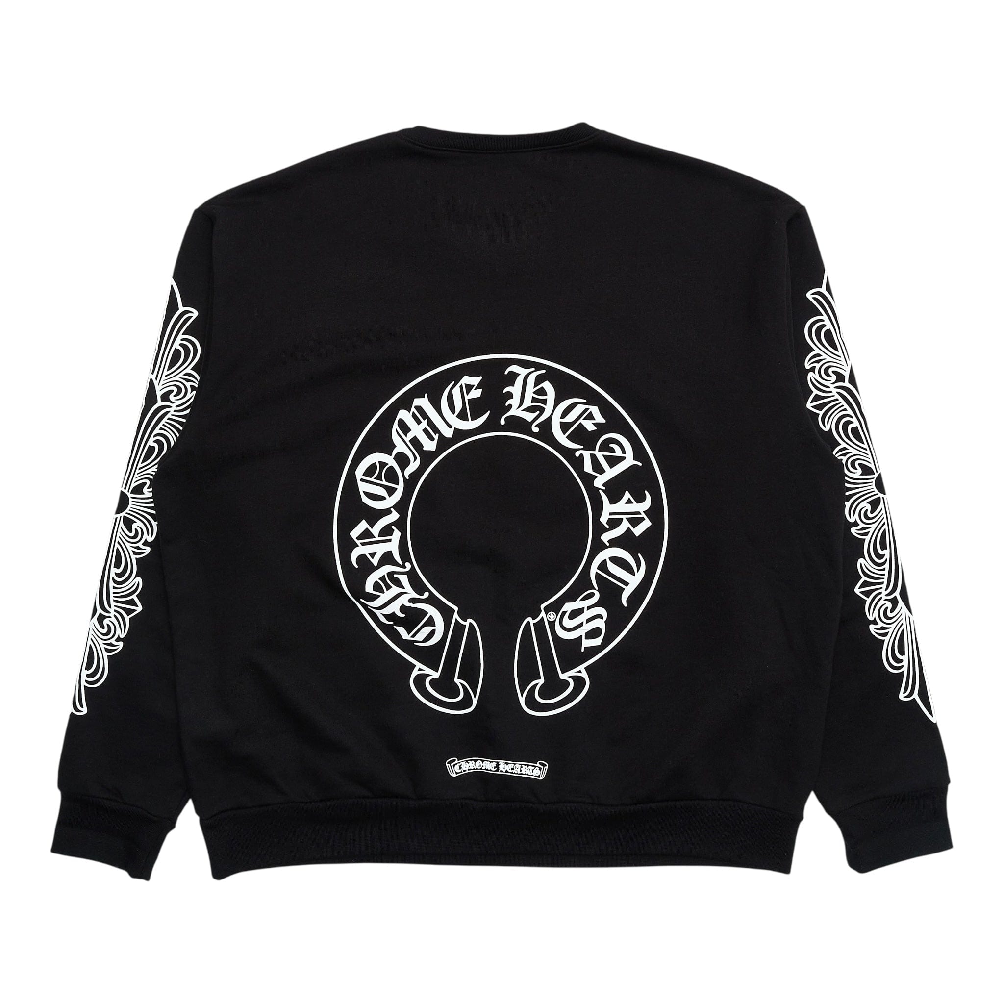 Chrome Hearts Horseshoe Floral Logo Crewneck Sweatshirt Black White
