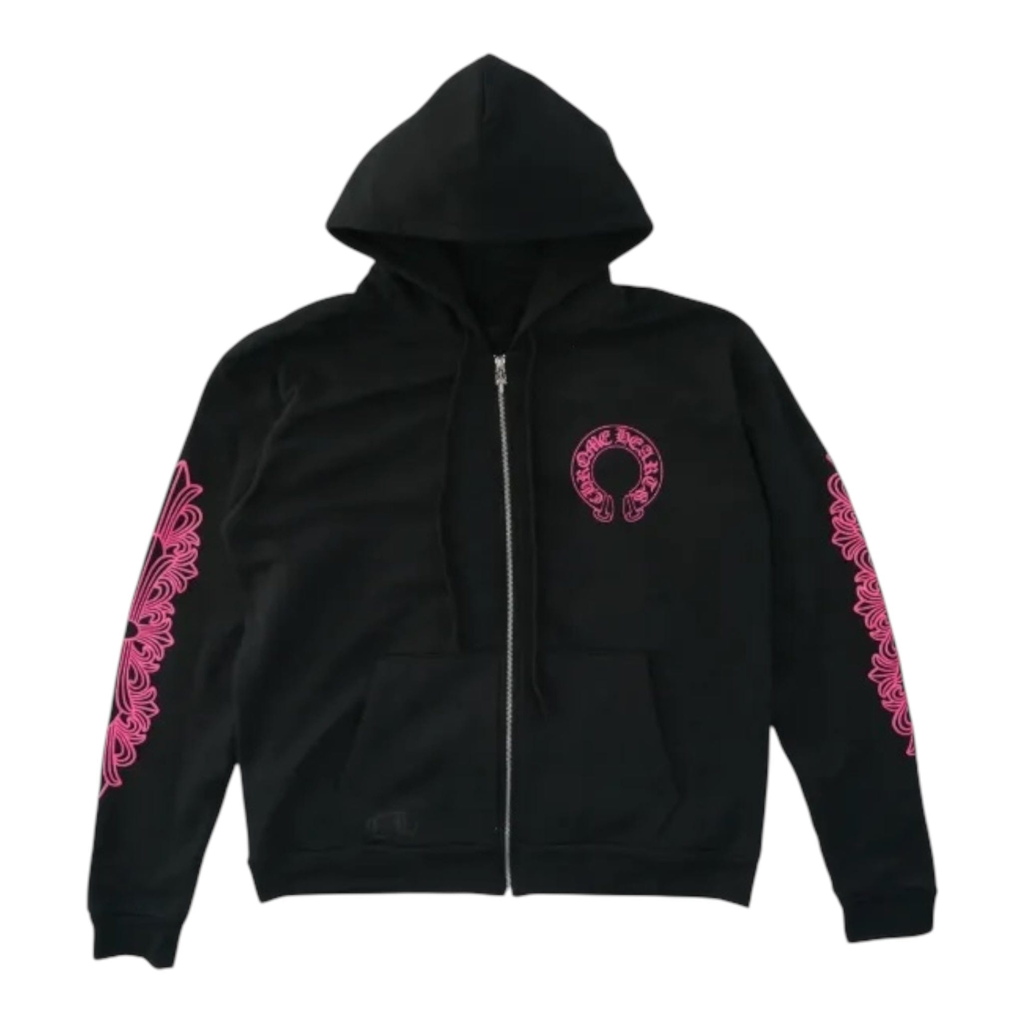 Chrome Hearts Horseshoe Floral Zip Up Hooded Sweatshirt Black Pink