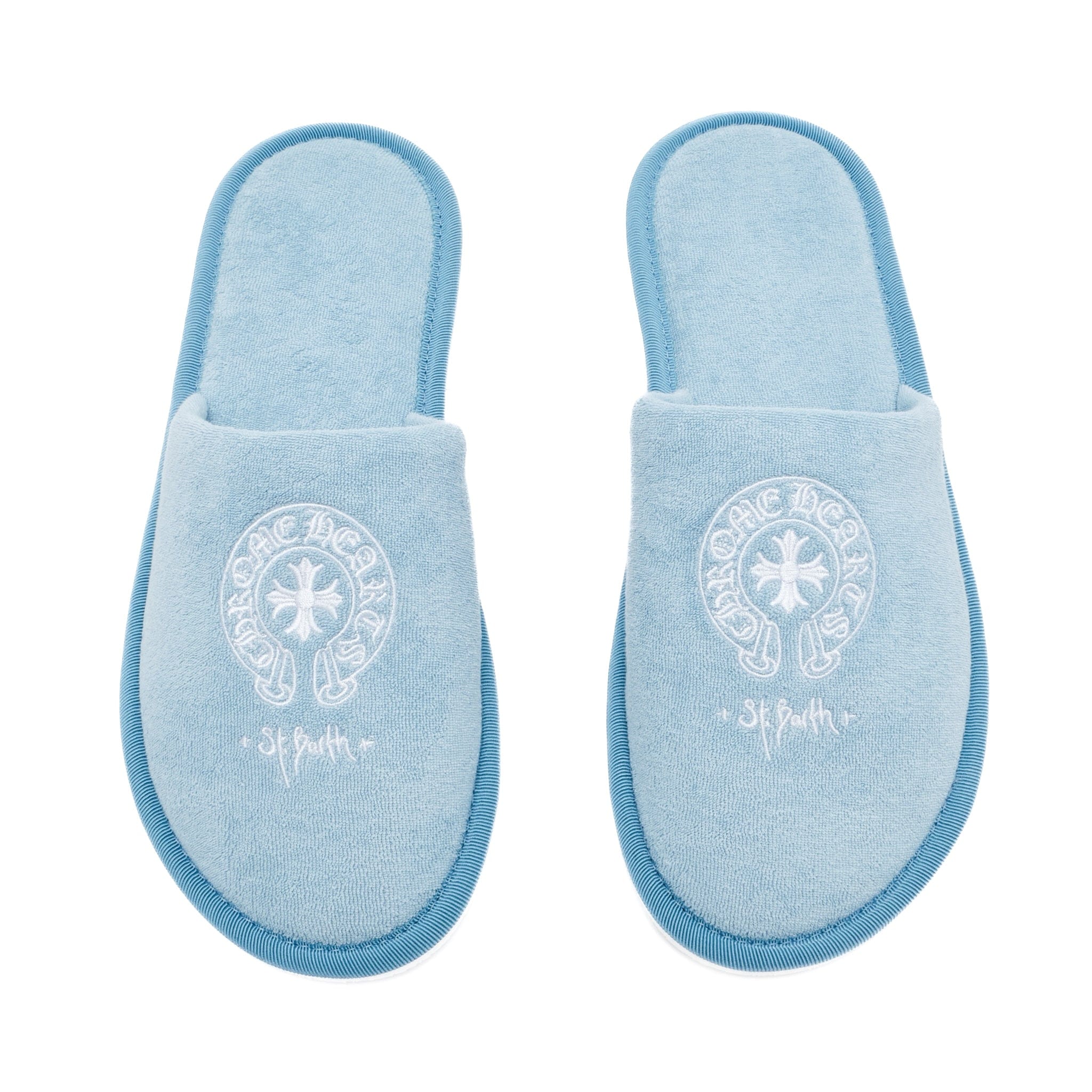 Chrome Hearts St. Barth Exclusive Horseshoe Logo Hotel Slippers Light Blue White