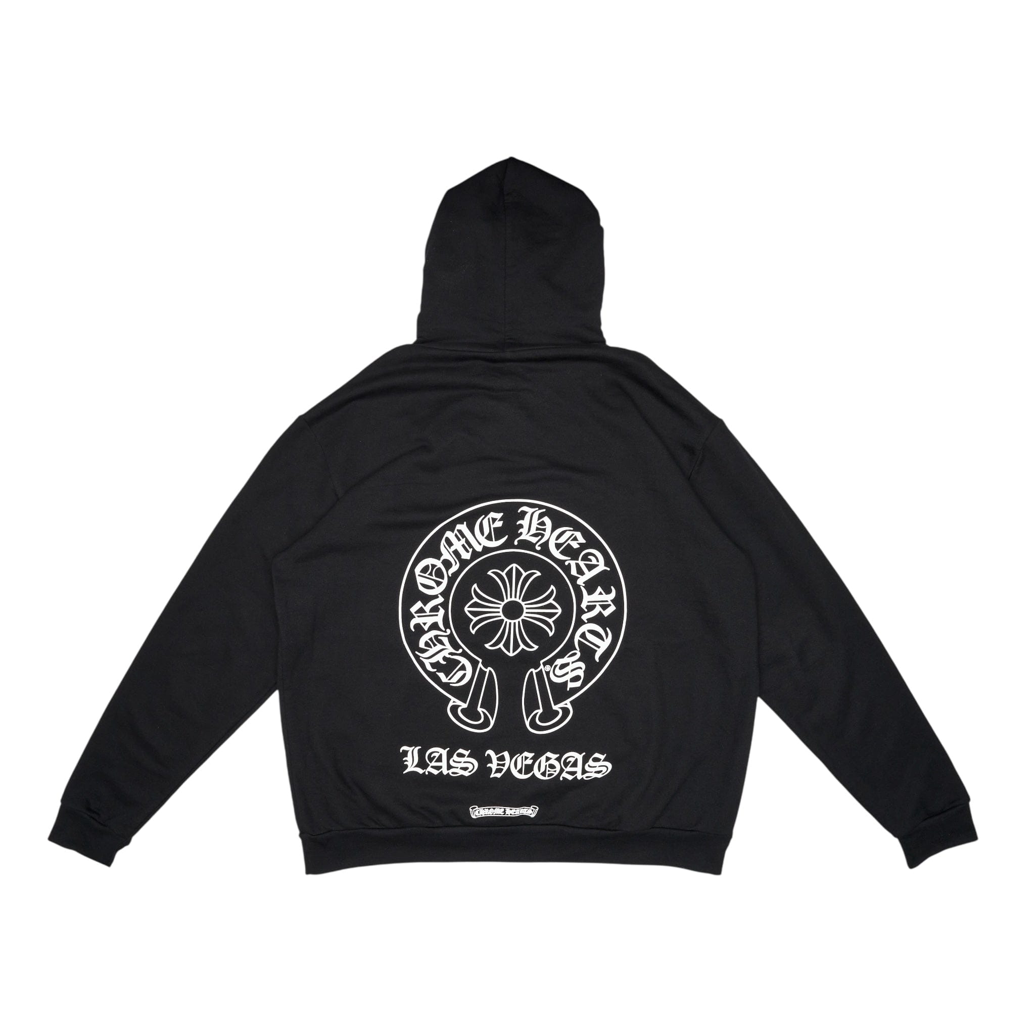 Chrome Hearts Las Vegas Exclusive Horseshoe Logo Zip Up Hooded Sweatshirt Black White