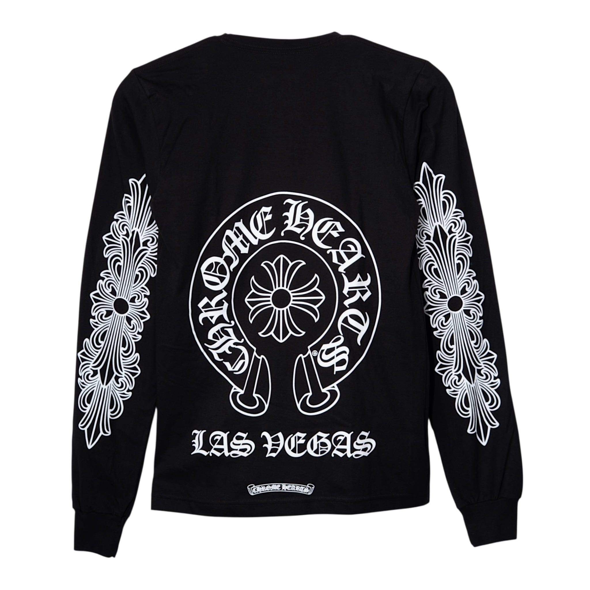 Chrome Hearts Las Vegas Exclusive Horseshoe Floral Logo Long Sleeve Tee Shirt Black White