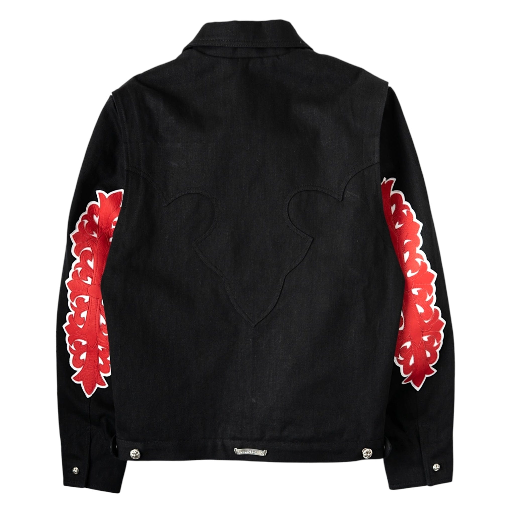 Chrome Hearts Le Fleur Leather Floral Patch Denim Jacket Black Red