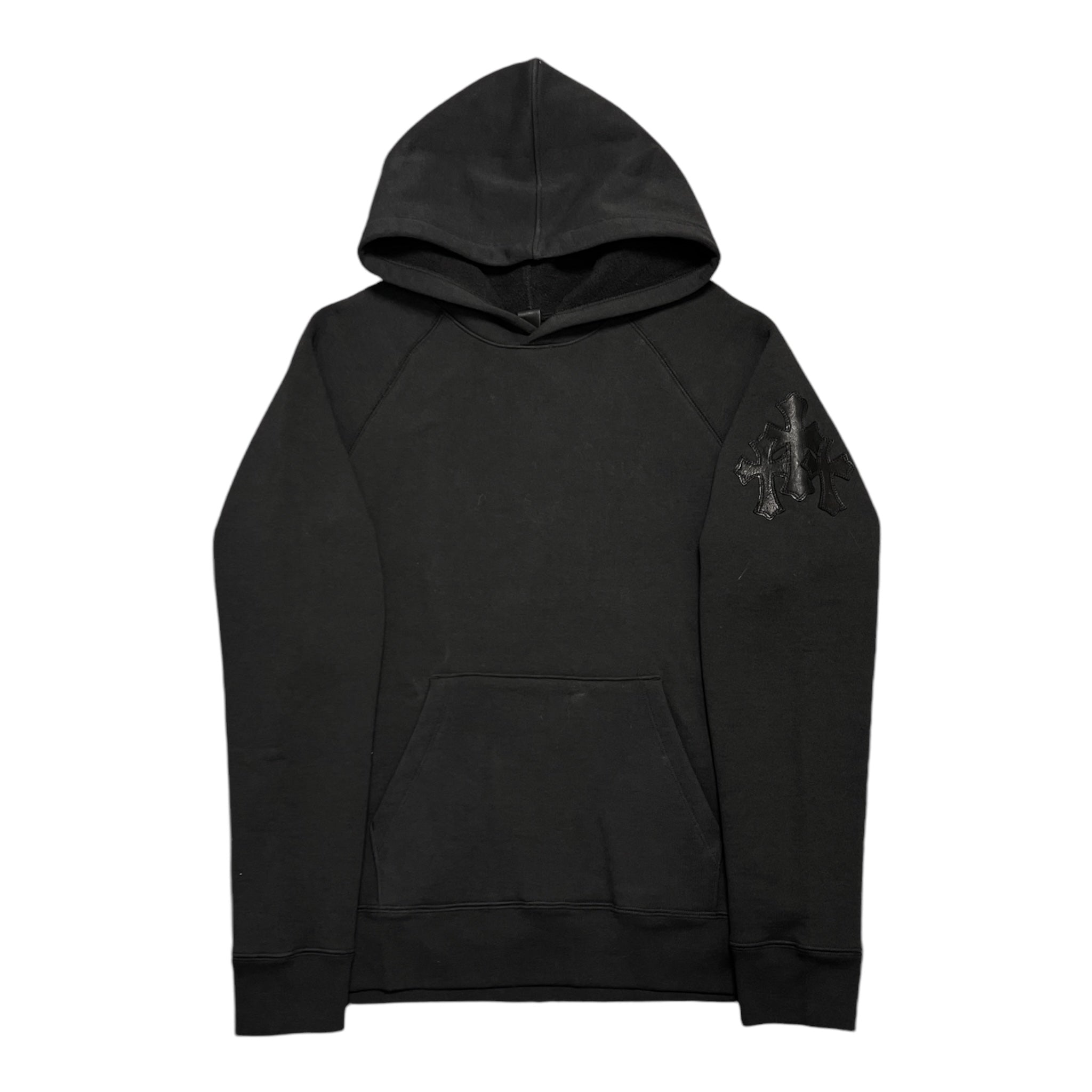 Chrome Hearts Paper Jam Triple Cross Leather Patch Hooded Sweatshirt Black Black
