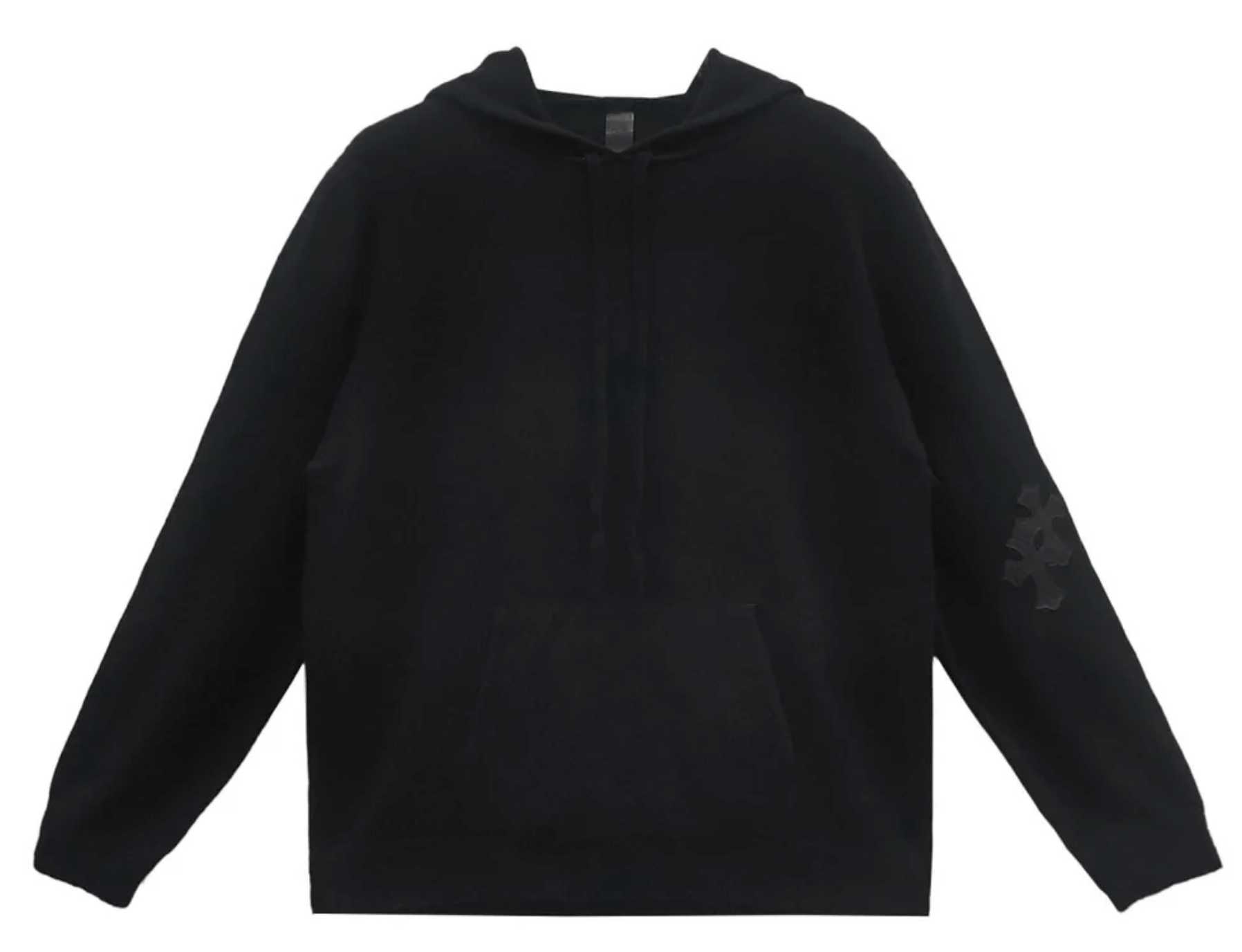 Chrome Hearts Leather Cross Patch Cashmere Hooded Sweatshirt Black