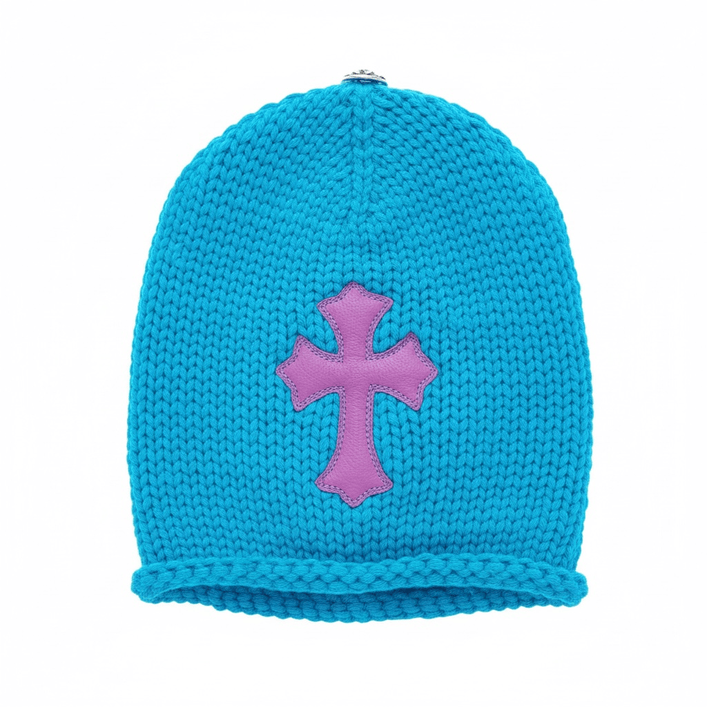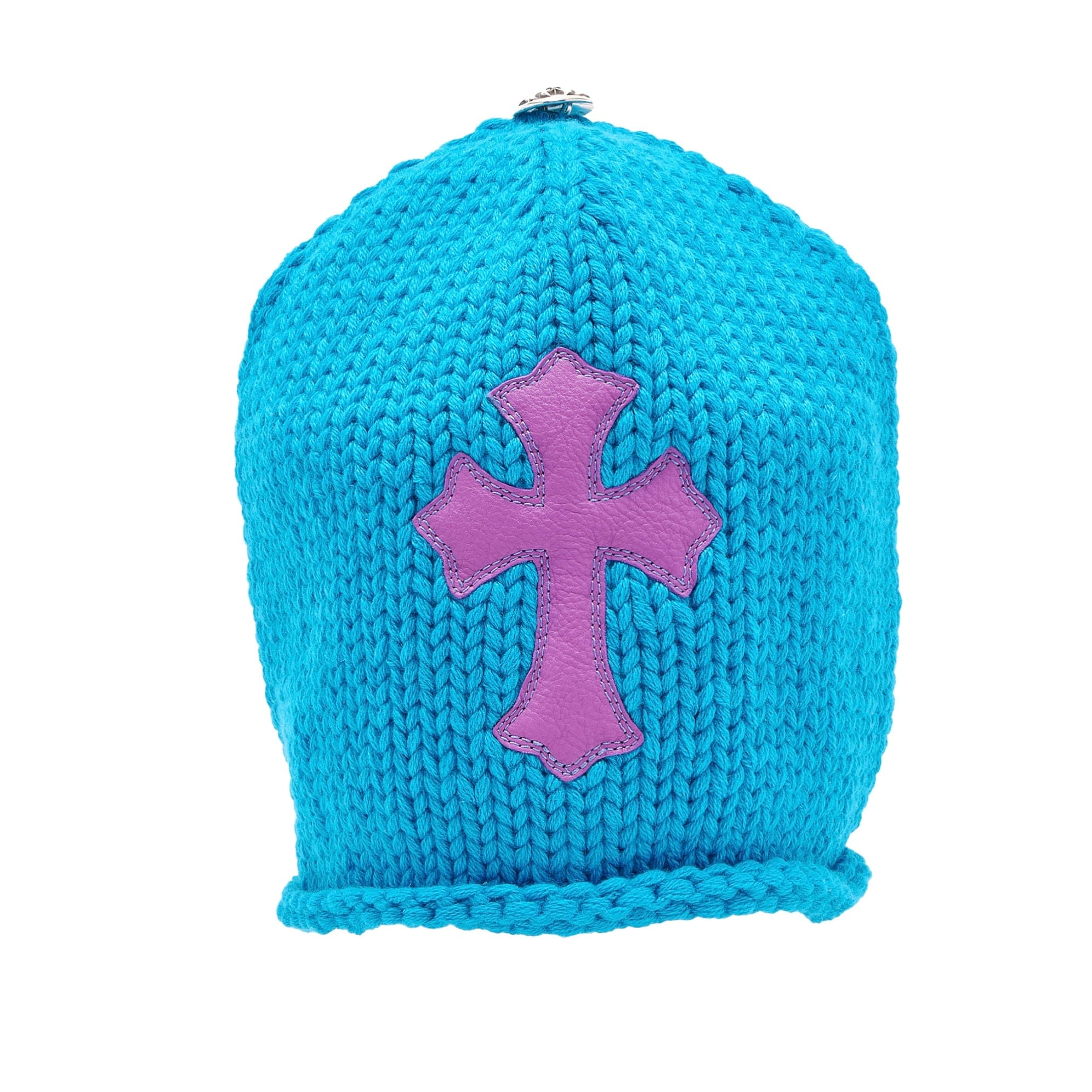 Chrome Hearts Leather Cross Patch Cashmere Knit Beanie Blue Purple