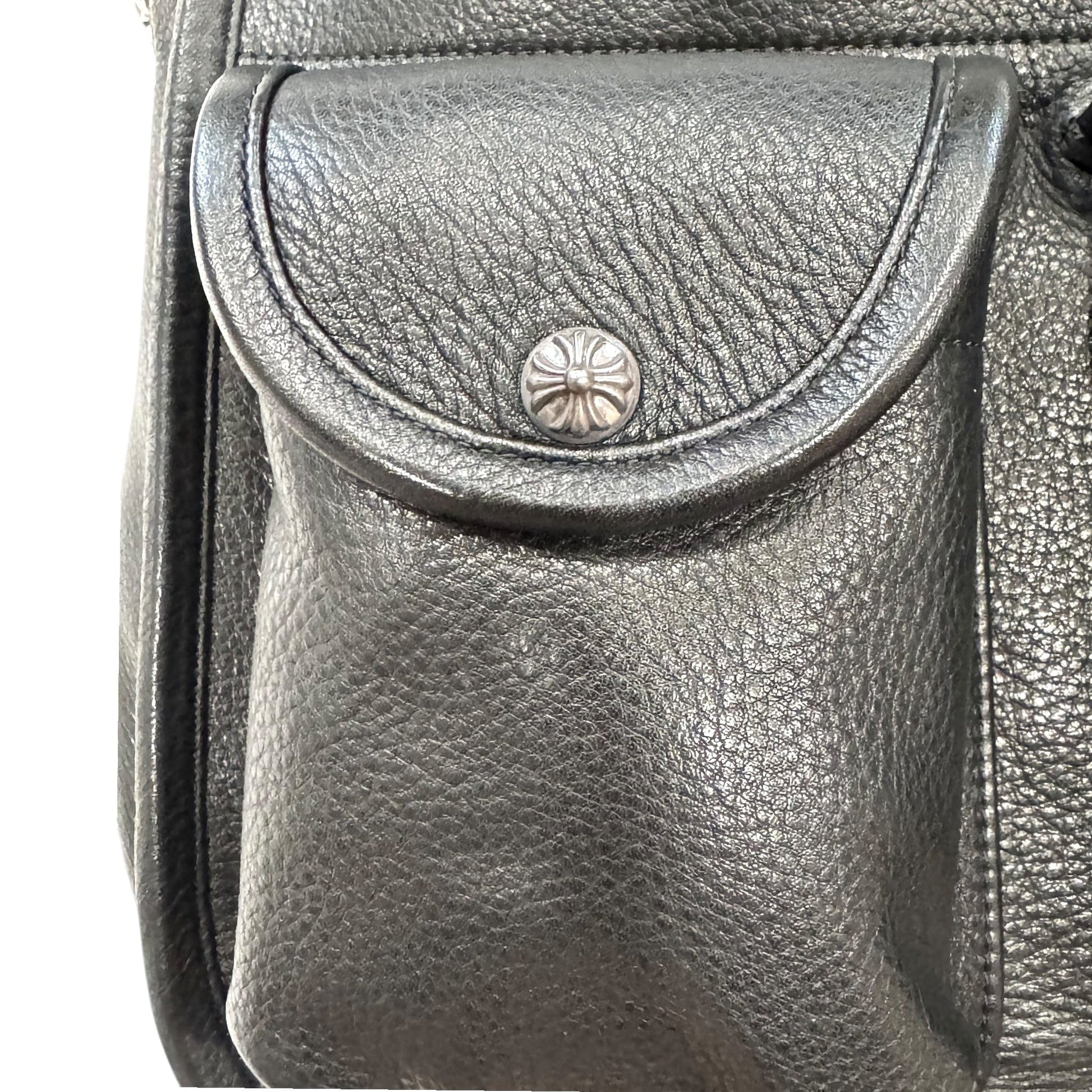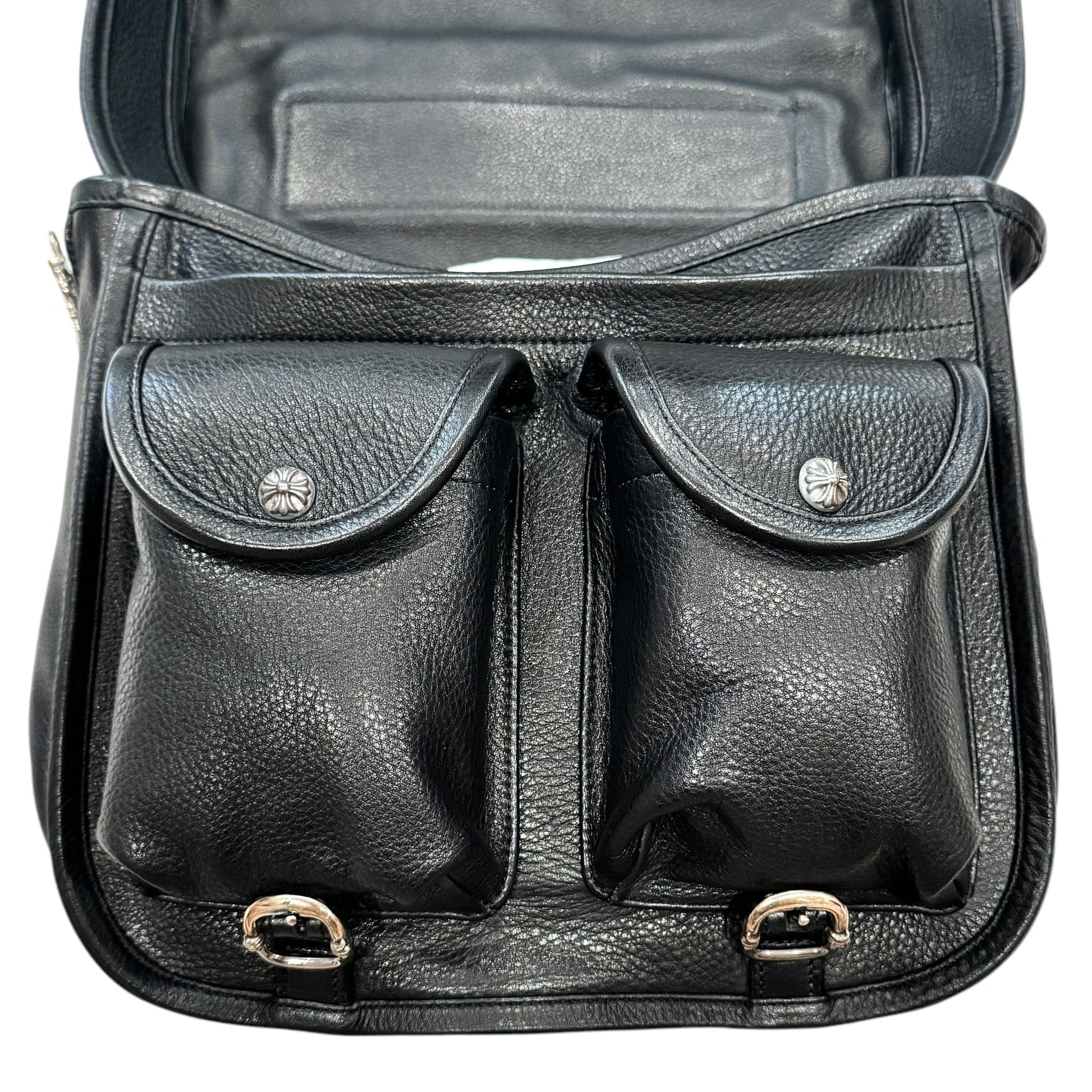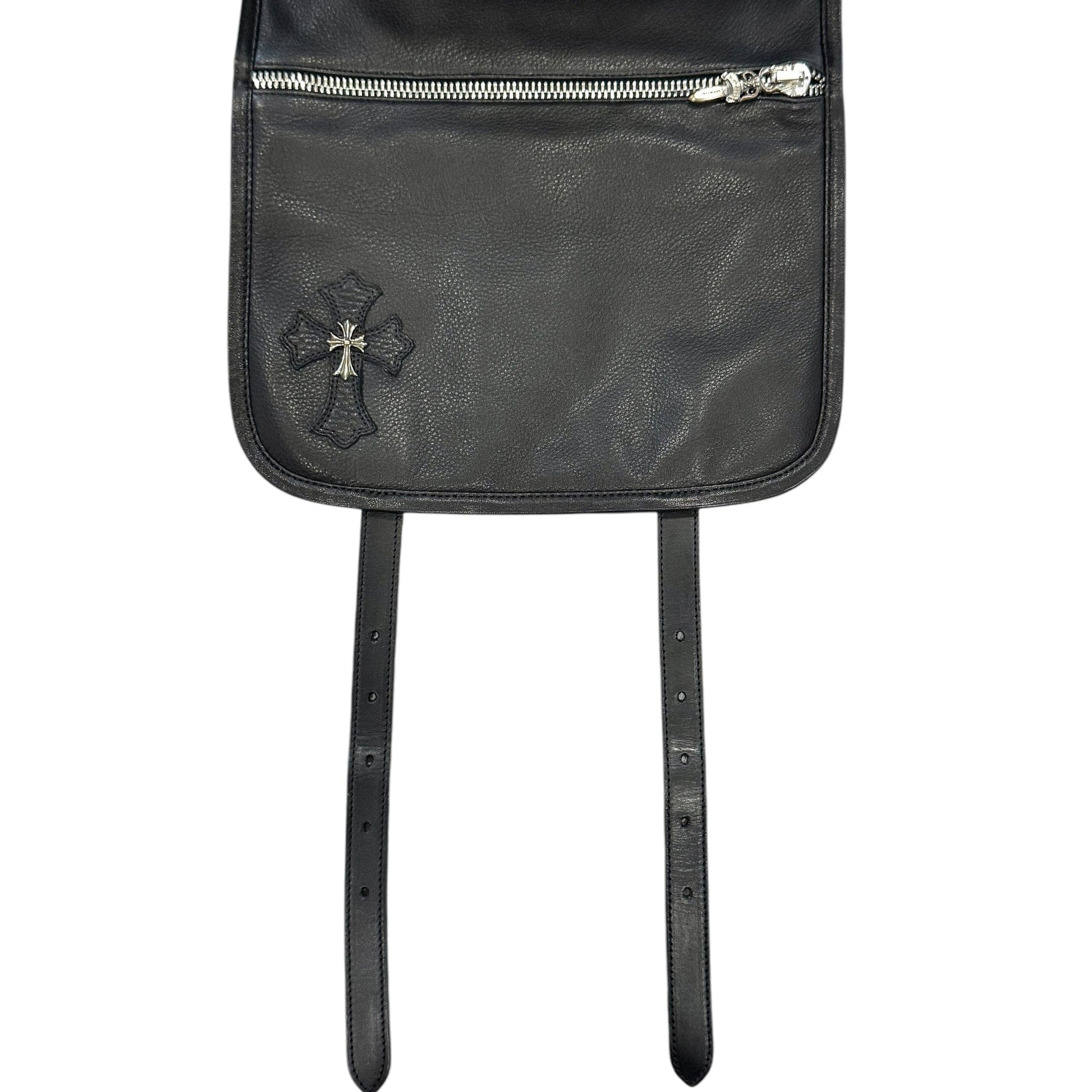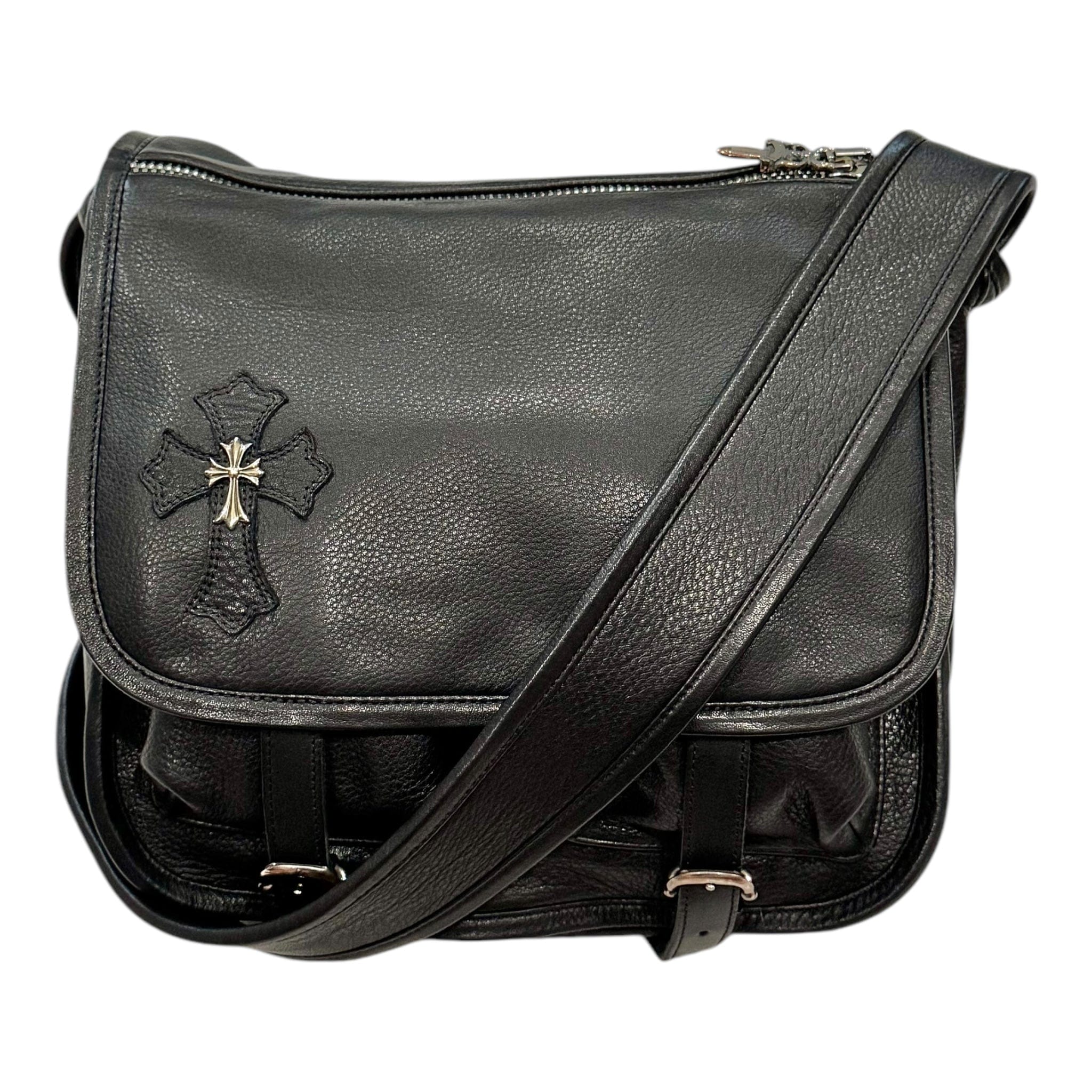 Chrome Hearts Leather Cross Patch Messenger Bag Black Silver