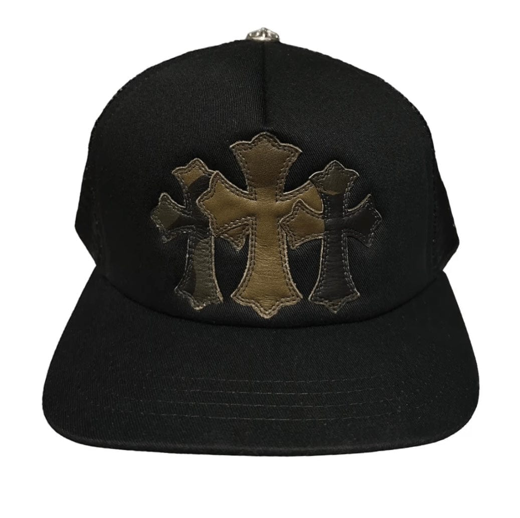 Chrome Hearts Leather Cross Patch Trucker Hat Black Camo