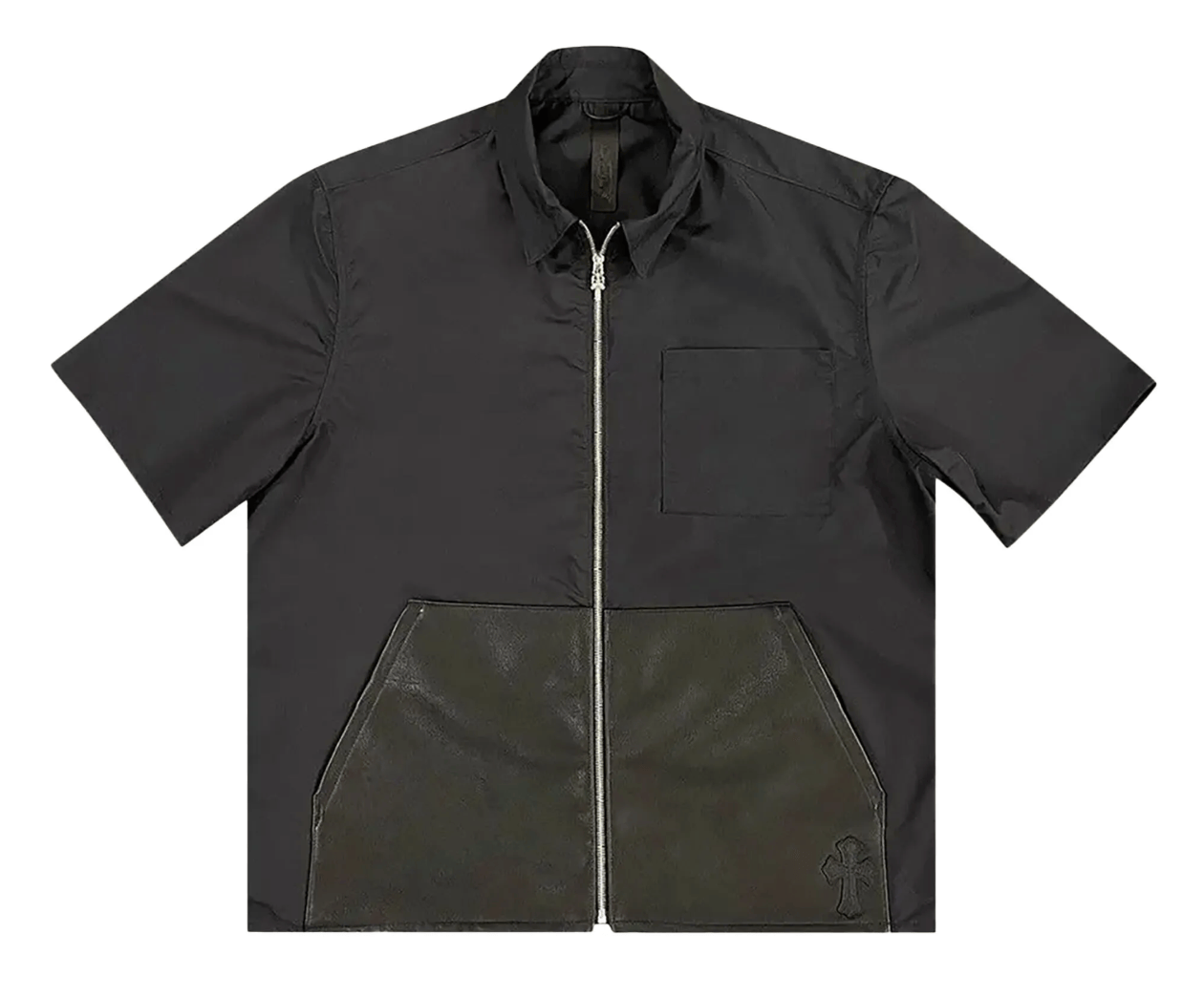Chrome Hearts Leather Pocket Zip Up Nylon Short Sleeve Shirt Black