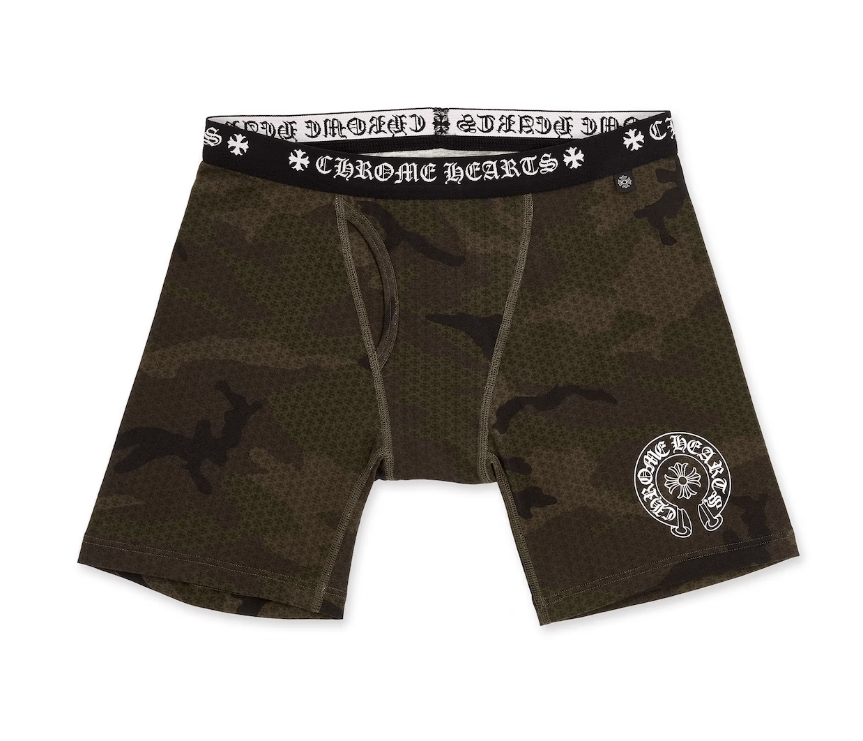 BLACK COTTON BOXER BRIEF WITH BLACK TONAL JACQUARD KNIT CHROME HEARTS ELASTIC WAISTBAND