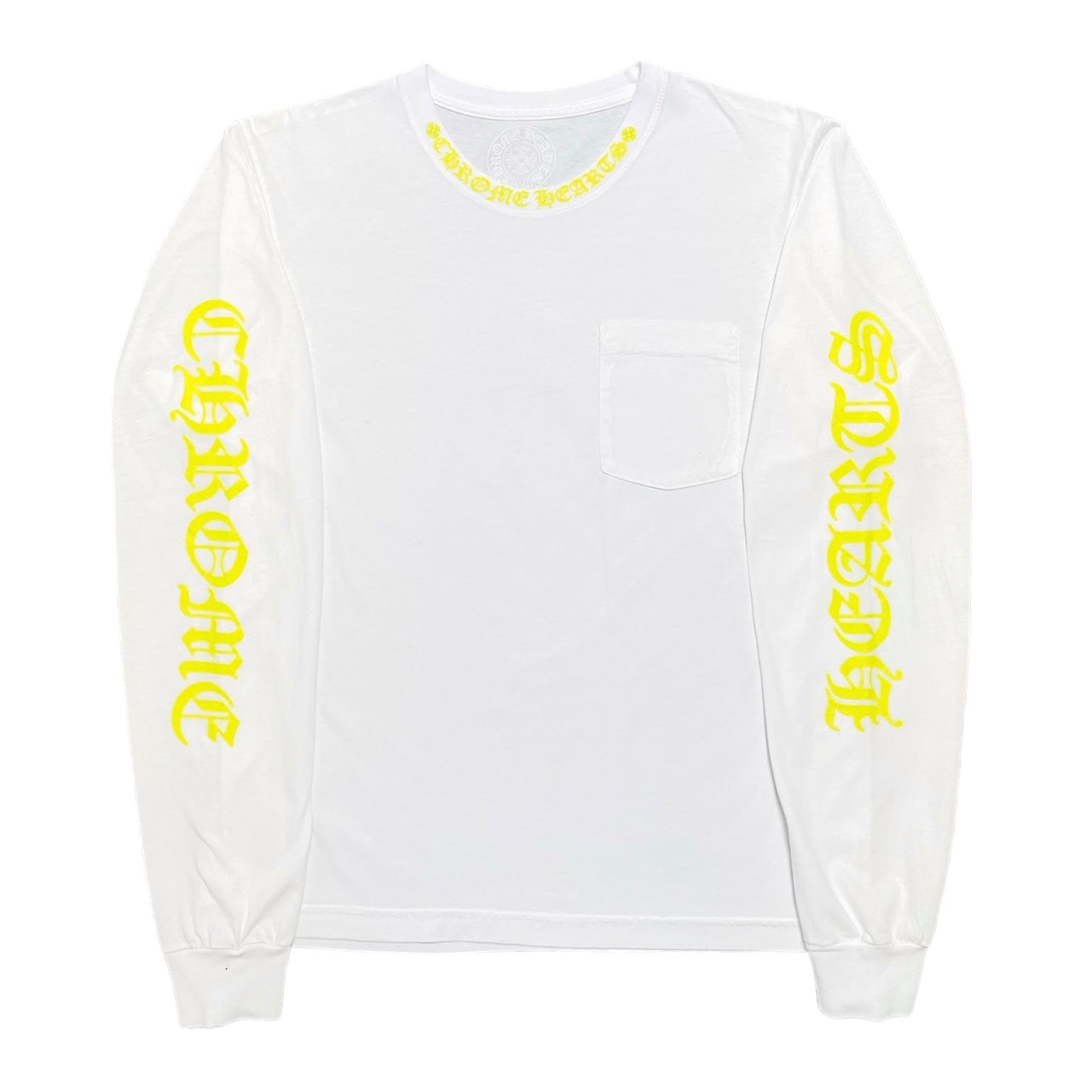 Chrome Hearts Neck Logo Long Sleeve Tee Shirt White Neon Green