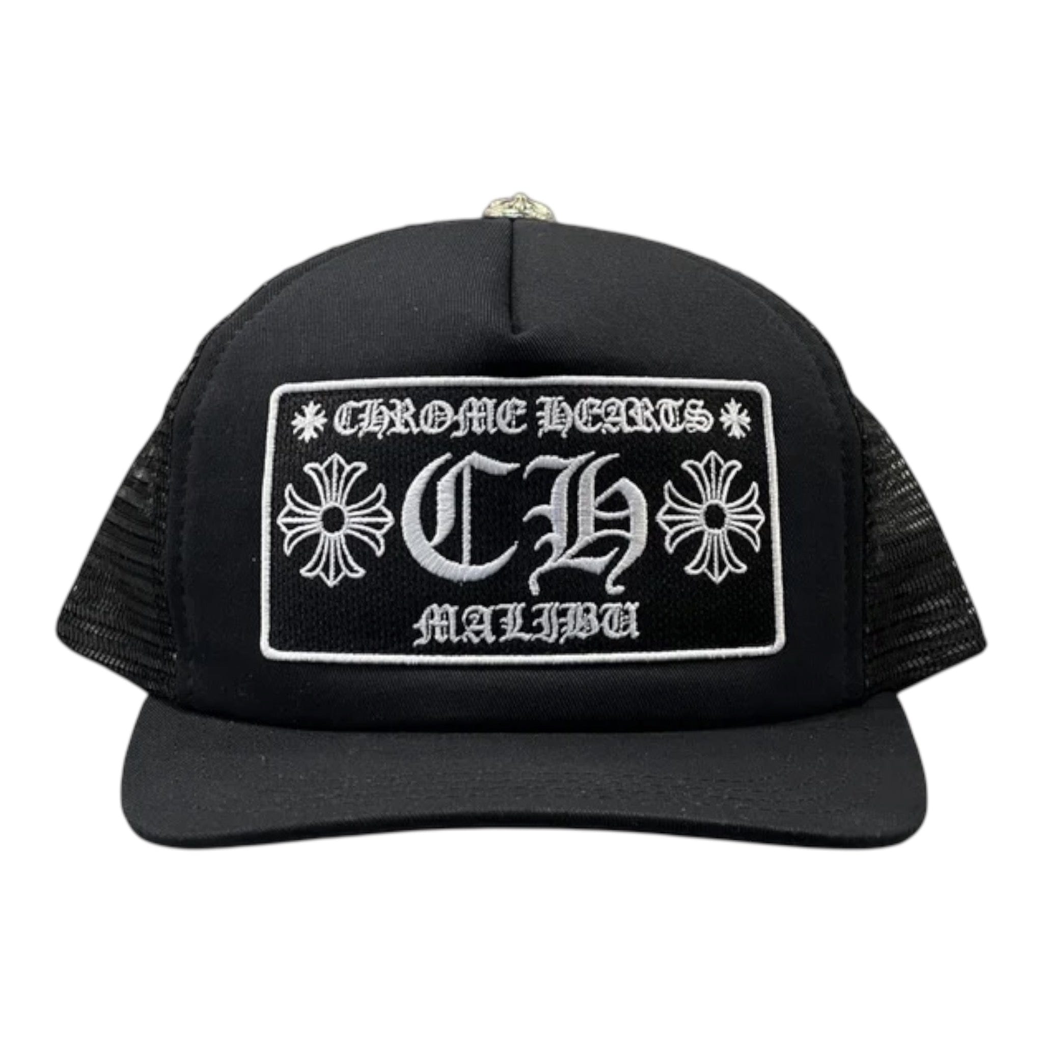 Chrome Hearts Malibu Exclusive CH Patch Trucker Hat Black White