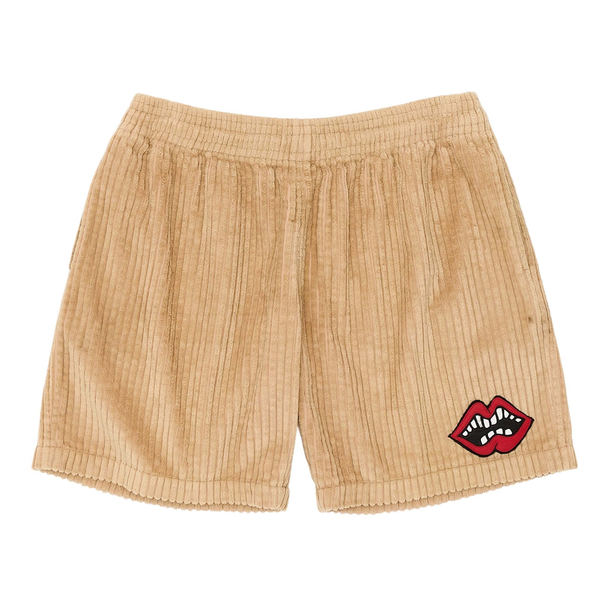 Chrome Hearts x Matty Boy Chomper Lips Leather Patch Corduroy Shorts Tan Multi