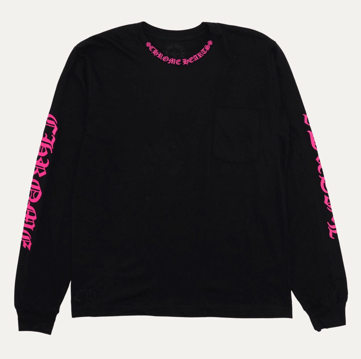 Chrome Hearts Neck Logo Pocket Long Sleeve Tee Shirt Black Pink
