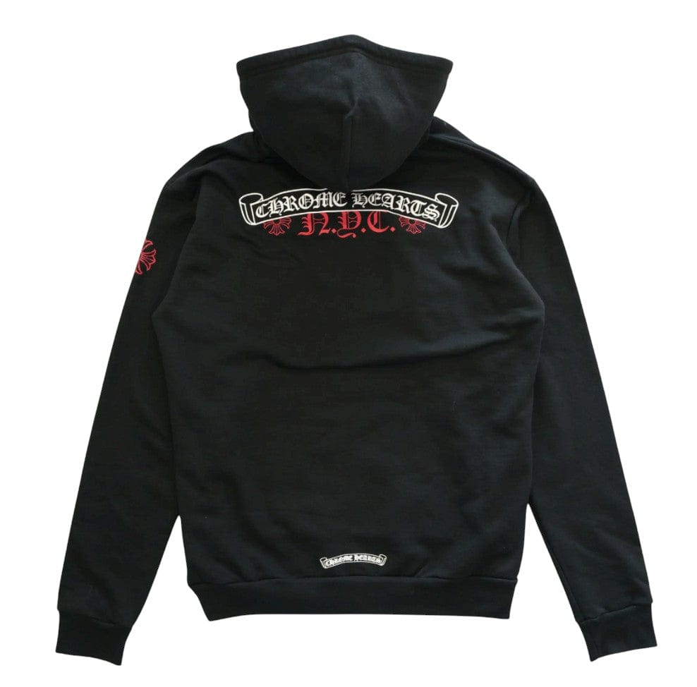 Chrome Hearts NYC Exclusive Scroll Logo Zip Up Hooded Sweatshirt Black Red White